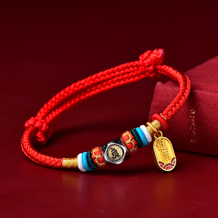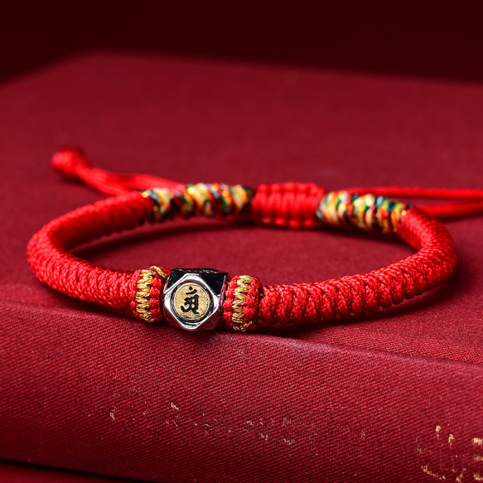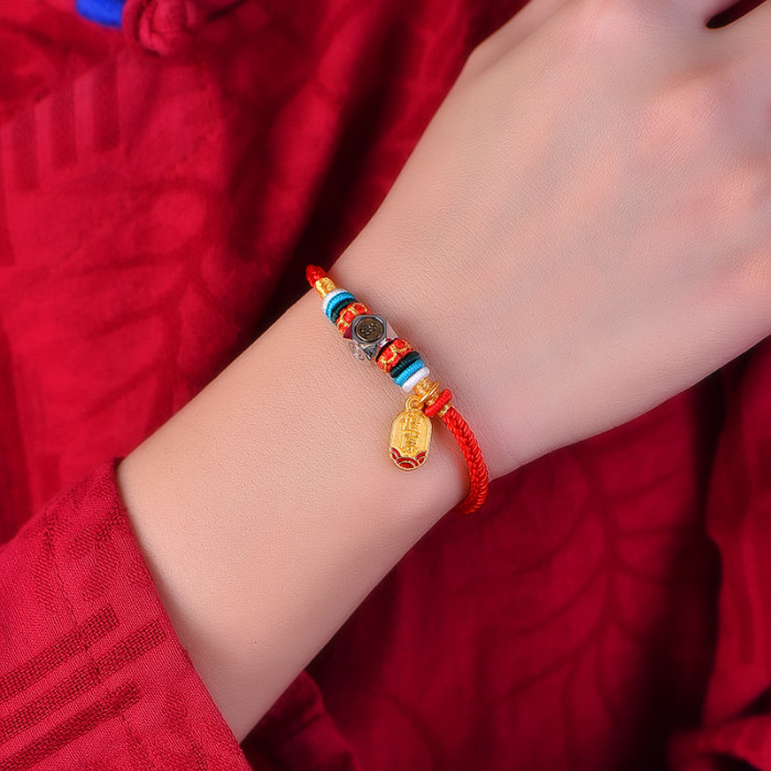 鍍銀生肖本命彿手繩手工編織本命年八大守護神紅繩手鏈