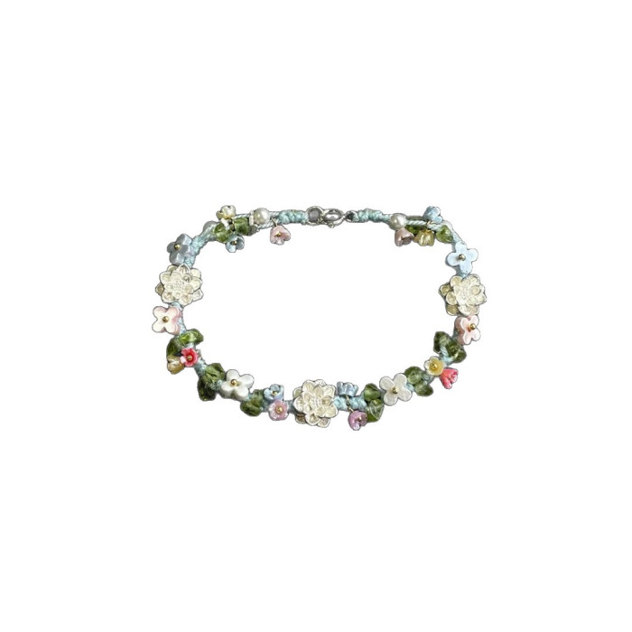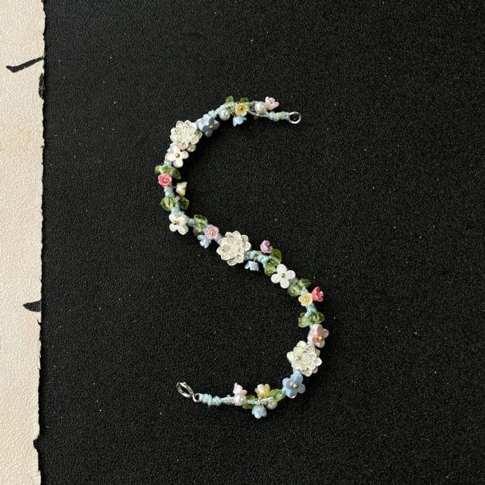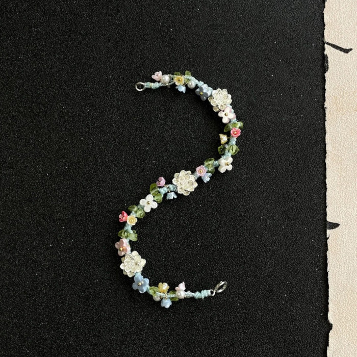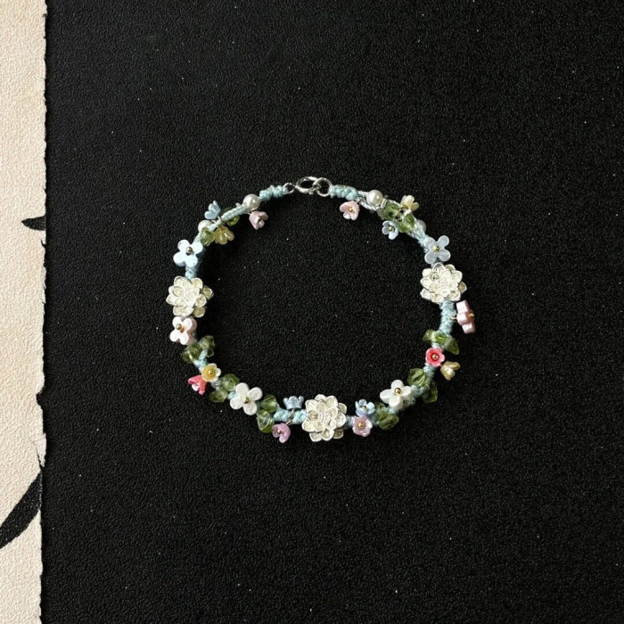 英國【設計師】Make Kana S925鍍銀蓮花彩色編織手繩小衆手鏈擺件