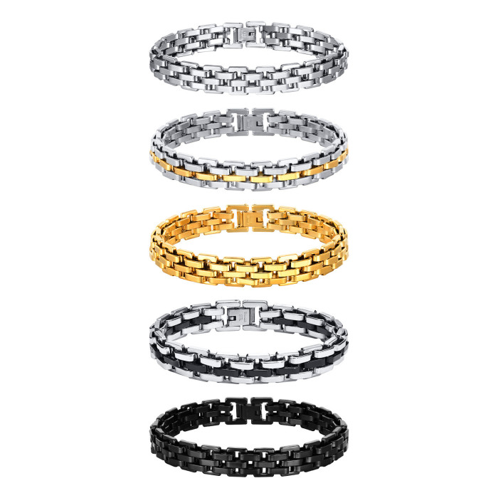 不鏽鋼歐美簡約男士職場精緻寬面錶帶手鏈通勤必備BR-1318