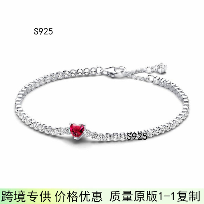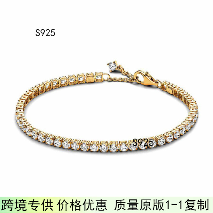 新款潘家多拉S925純銀密釘鏈式閃亮心形網球閃亮月亮閃亮梨光手鏈