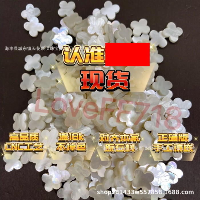 高版五花手鏈女四葉草精工CNC厚鍍18k黃紅瑪瑙白貝V金瘦花型
