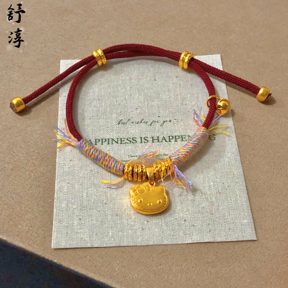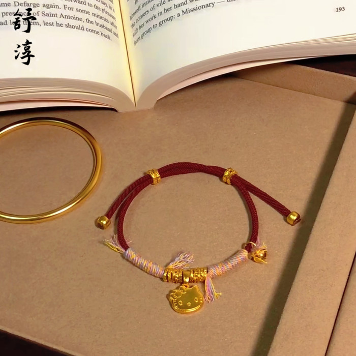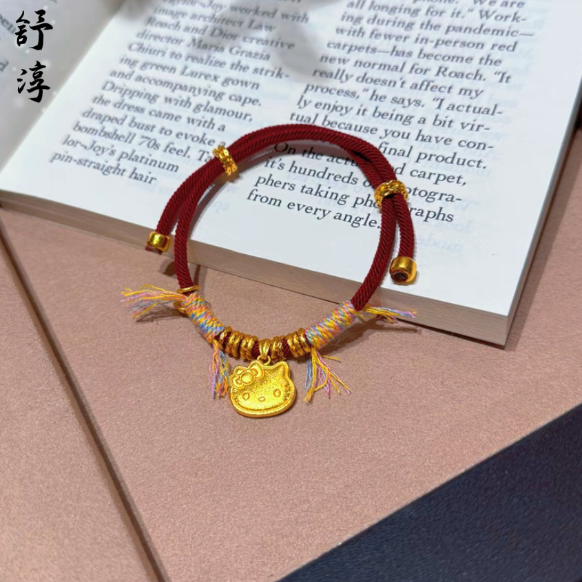 爆款沙金麥穗小胖福盤纏手鏈手繩凱蒂貓盤纏新年編織紅繩盤纏手繩