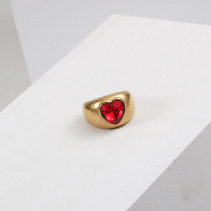 愛心寶石復古戒指vintage女時尚個性指環 感 做舊鈦鋼鍍金