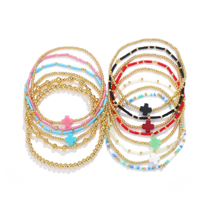 銅珠哥特十字架手鏈小衆高級感女士串珠不掉色手串小衆輕奢手鏈
