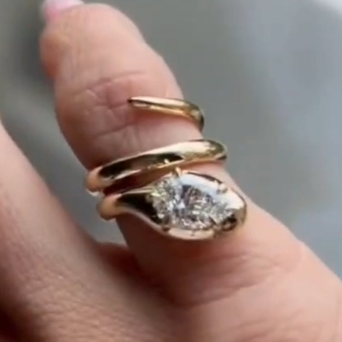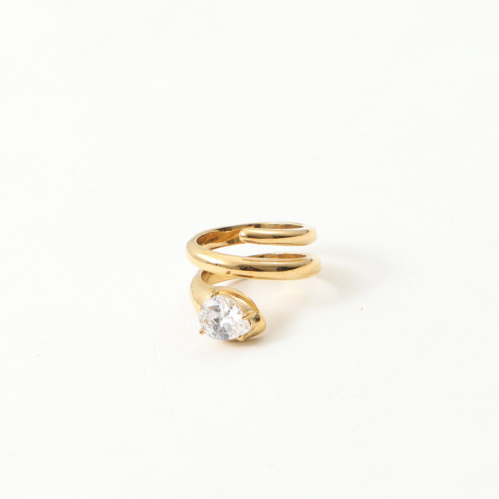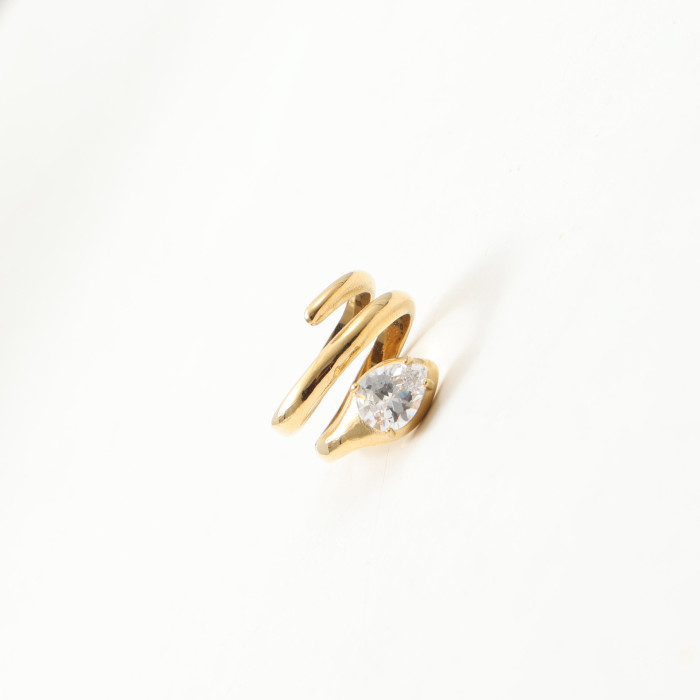 蛇戒指 多層 鈦鋼電鍍18k金 鑲嵌鋯石時尚通勤