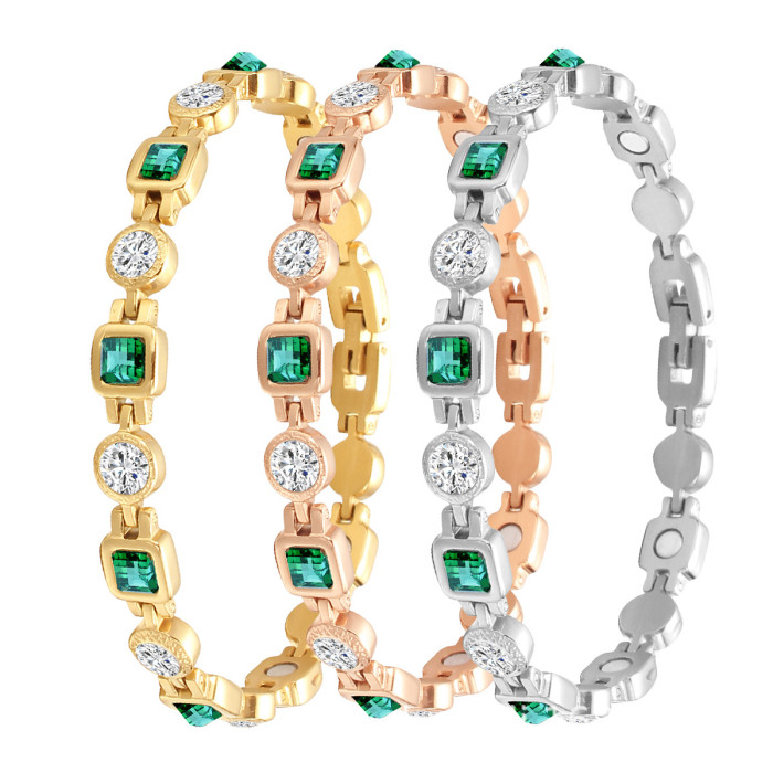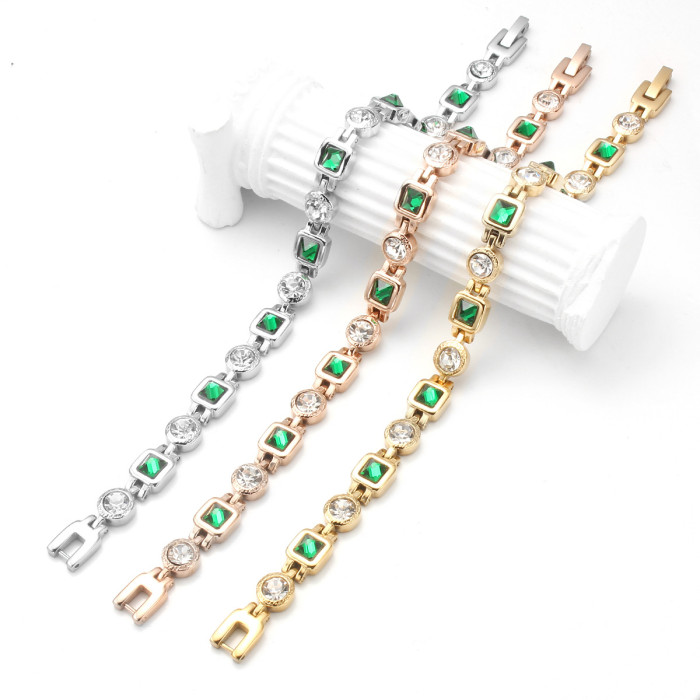 顔色 玫瑰金手鏈綠方塊