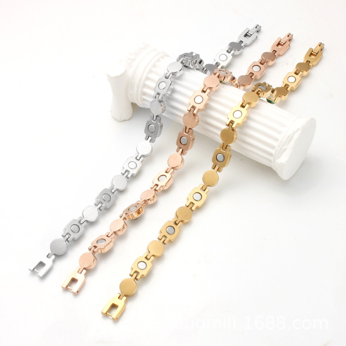 時尚輕奢不鏽鋼手鏈鑲鑽磁石手鏈百搭女款手飾