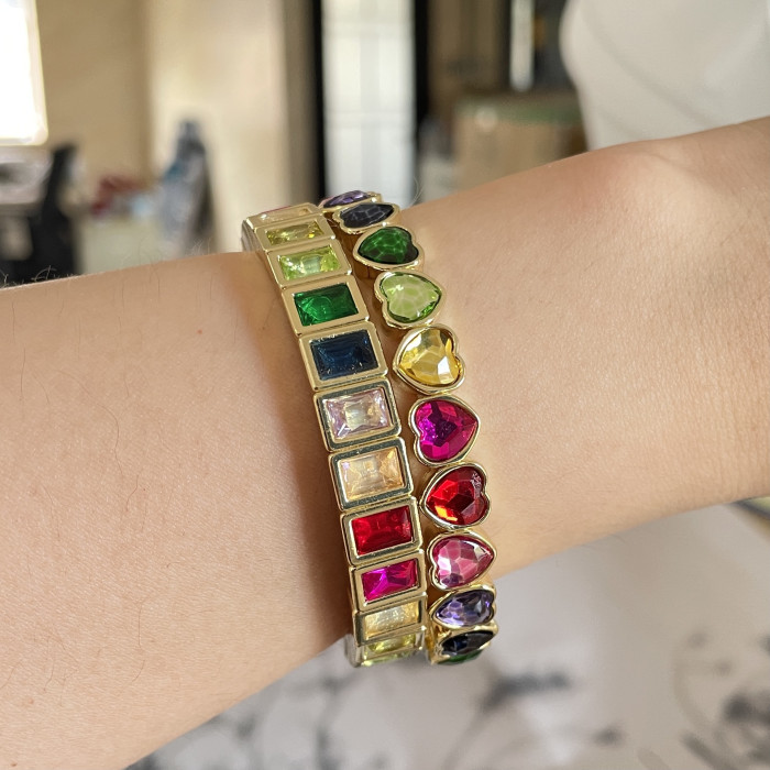 歐美彩色時尚幾何方塊愛心手鏈彈力女生手鏈