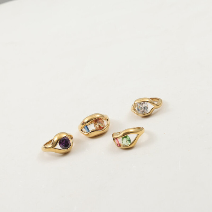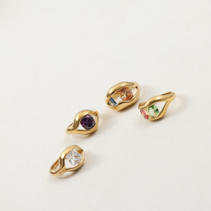 多色彩鋯石 拼接 戒指 鈦鋼電鍍18k金