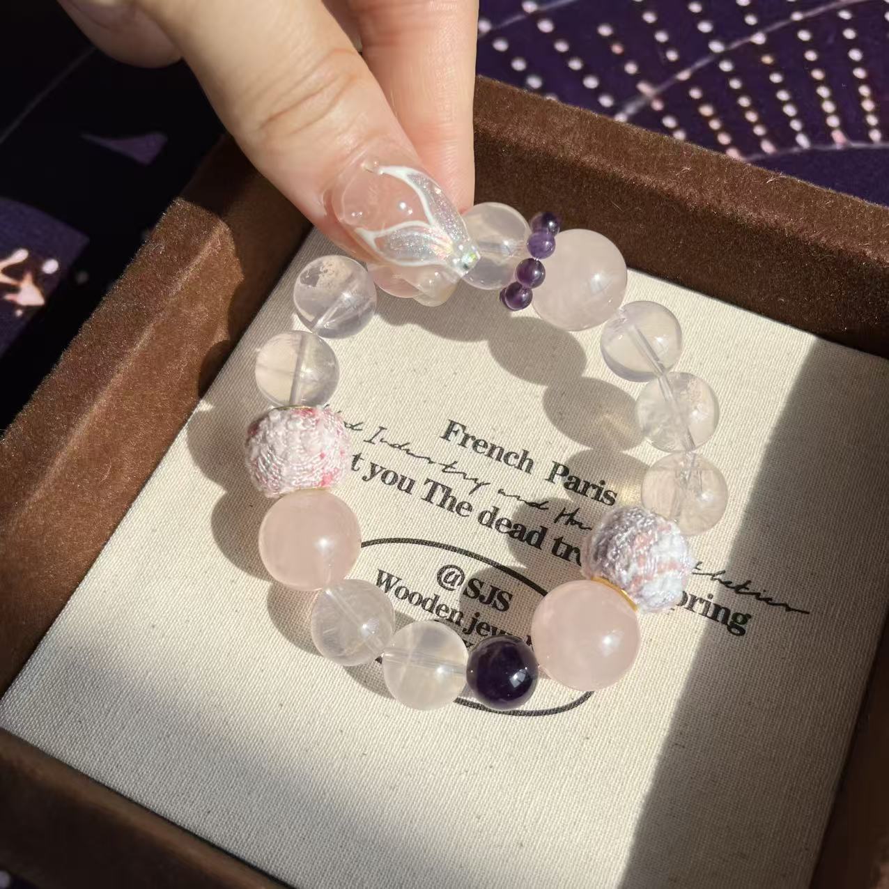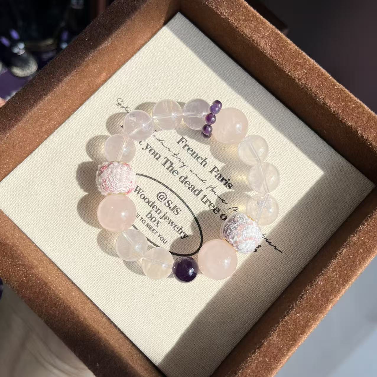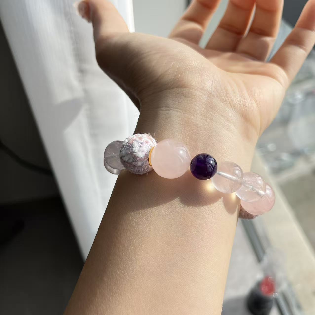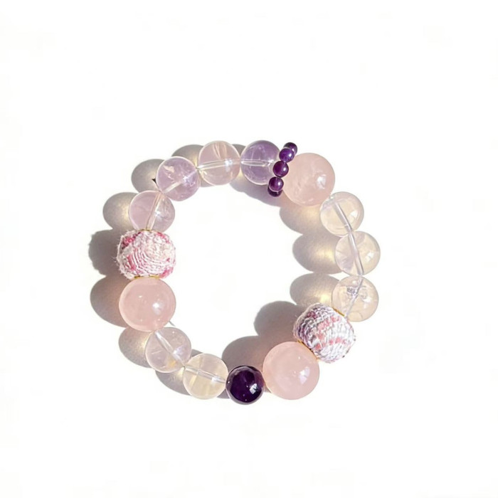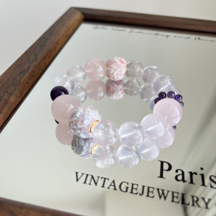 【春江水暖】天然粉晶巴西紫水晶手串毛球珠小衆溫柔精緻簡約甜美