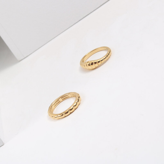 窄款小麵包戒指 鈦鋼電鍍18k金