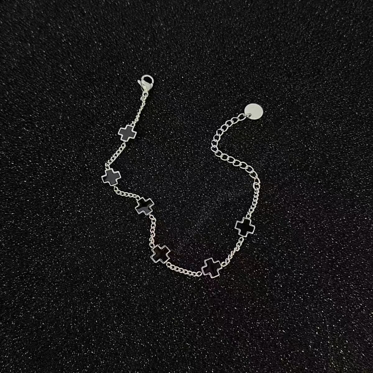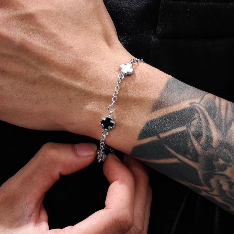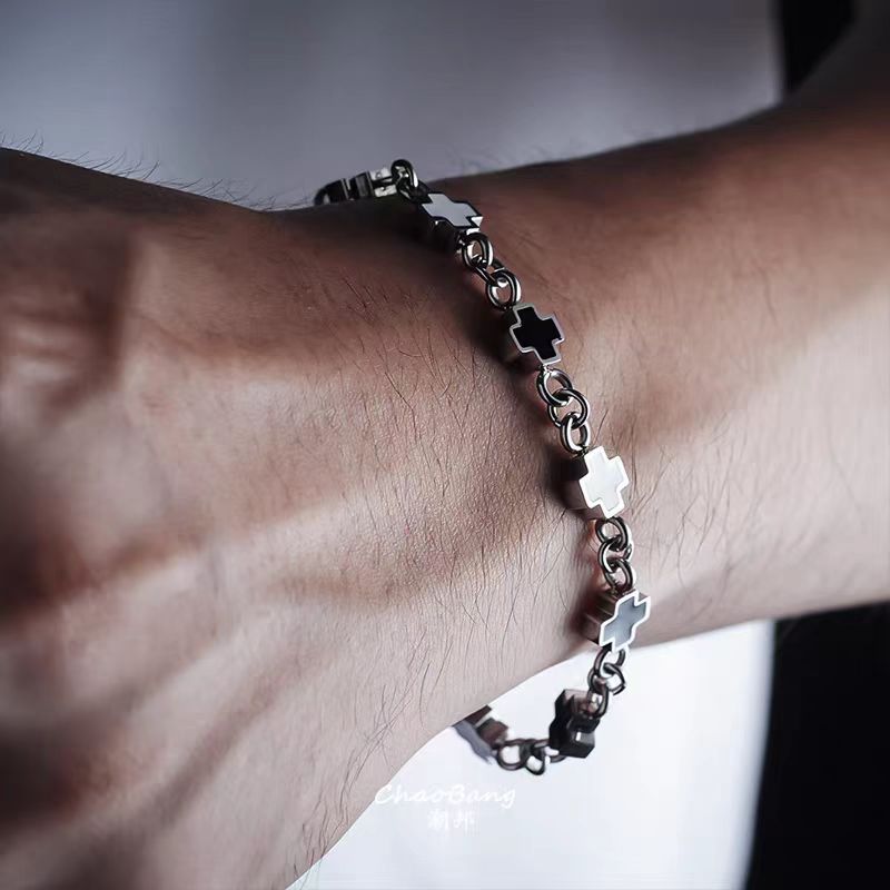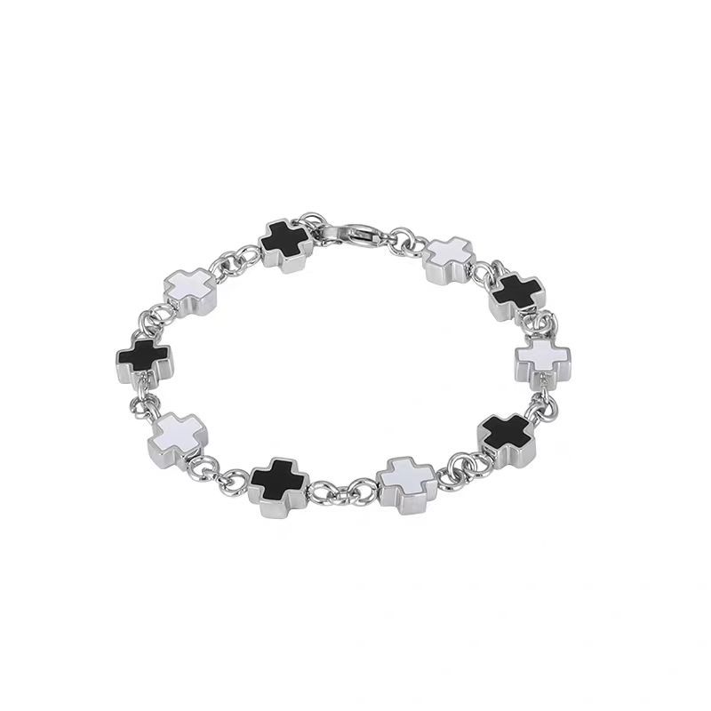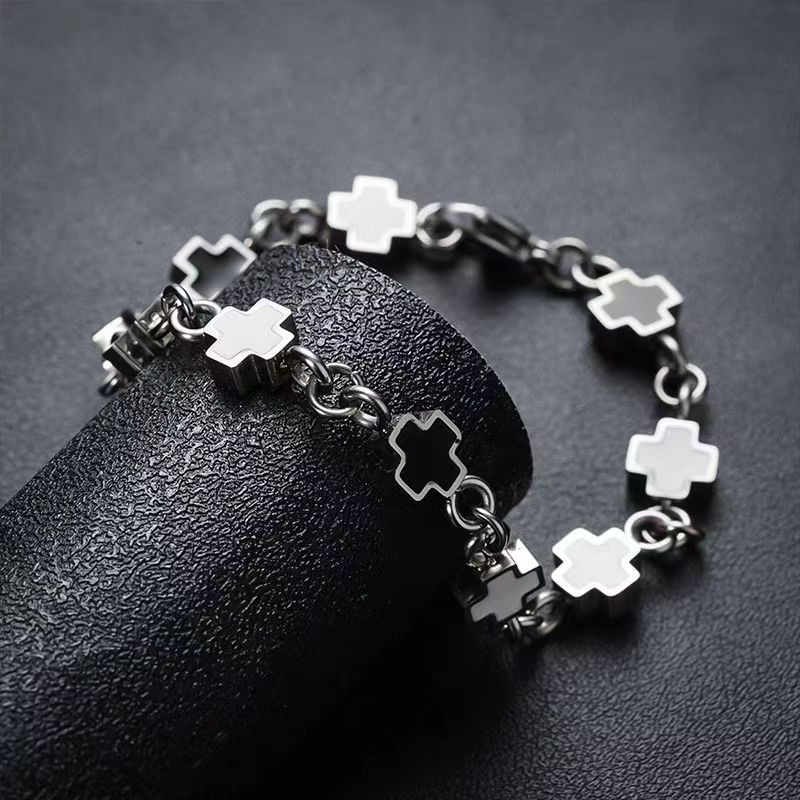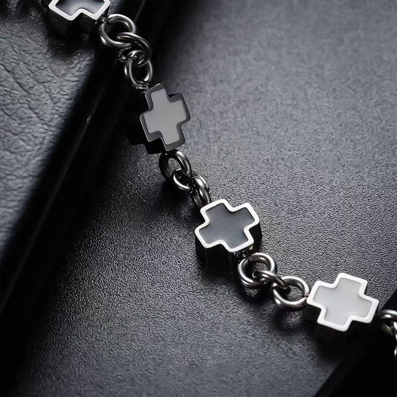 鈦鋼黑白拼接十字架手鏈時尚男女同款不鏽鋼不掉色高級感設計手飾