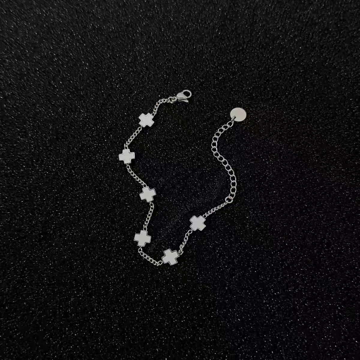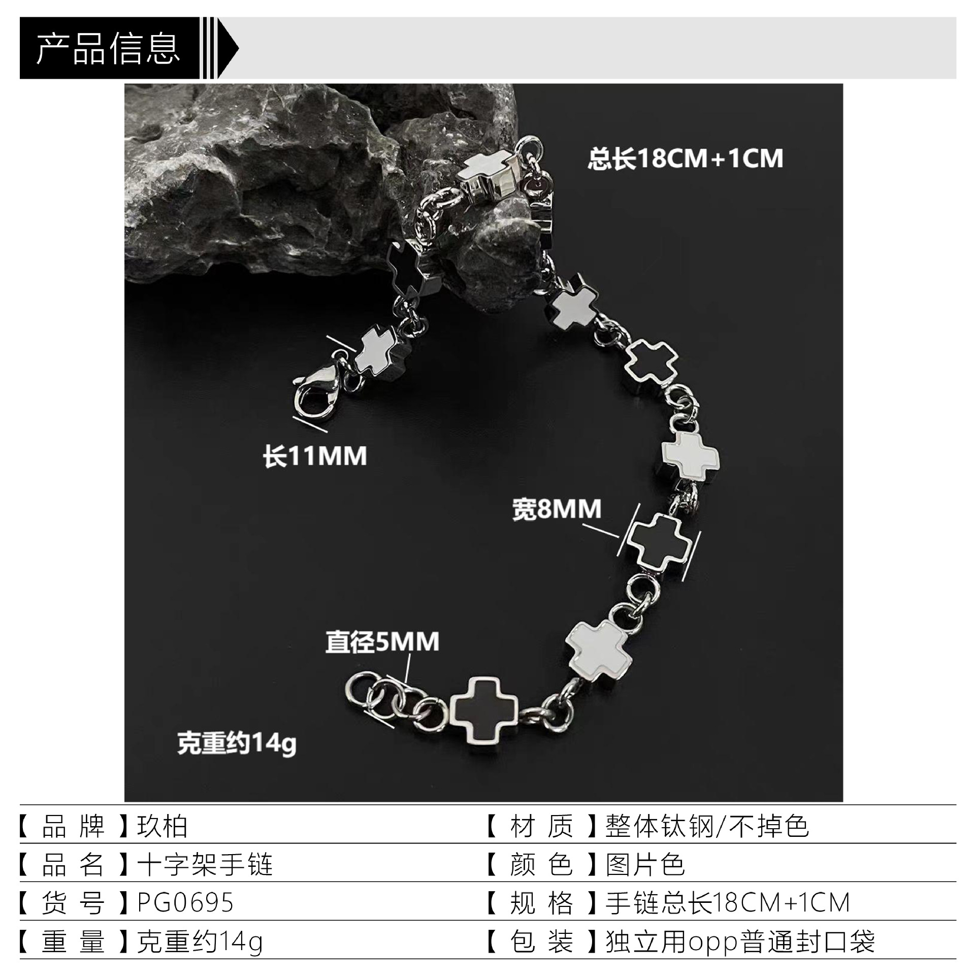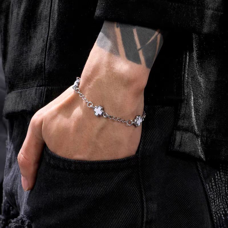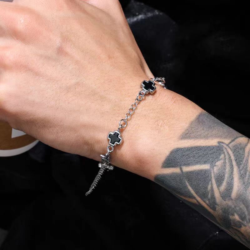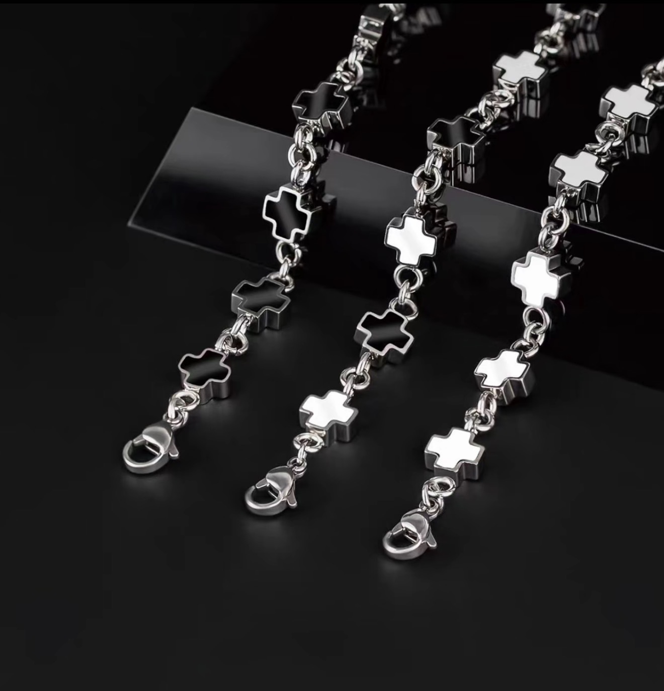 鈦鋼黑白拼接十字架手鏈時尚男女同款不鏽鋼不掉色高級感設計手飾