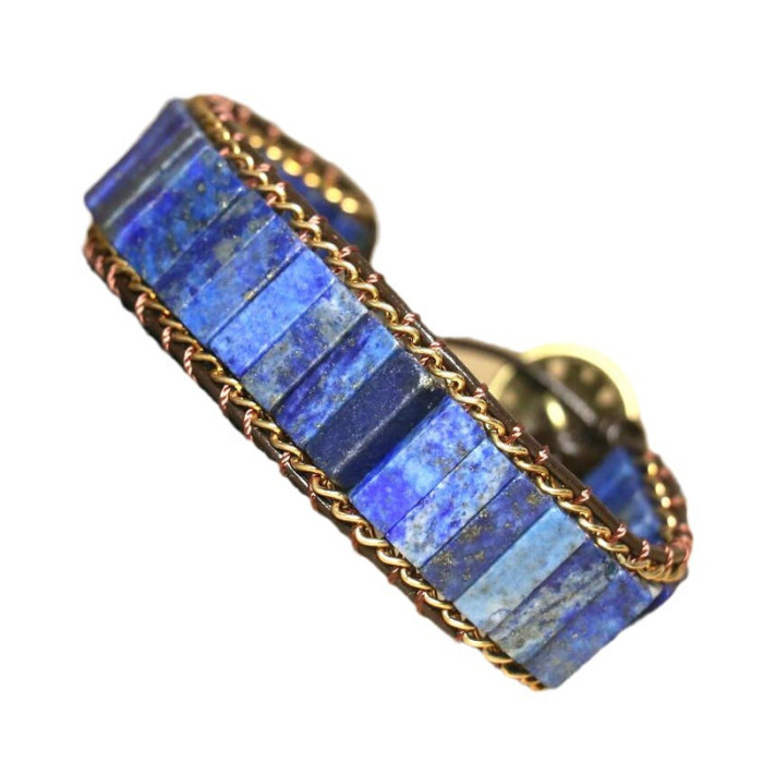 長條石頭青金石金鏈條編織手鏈可調節手鏈