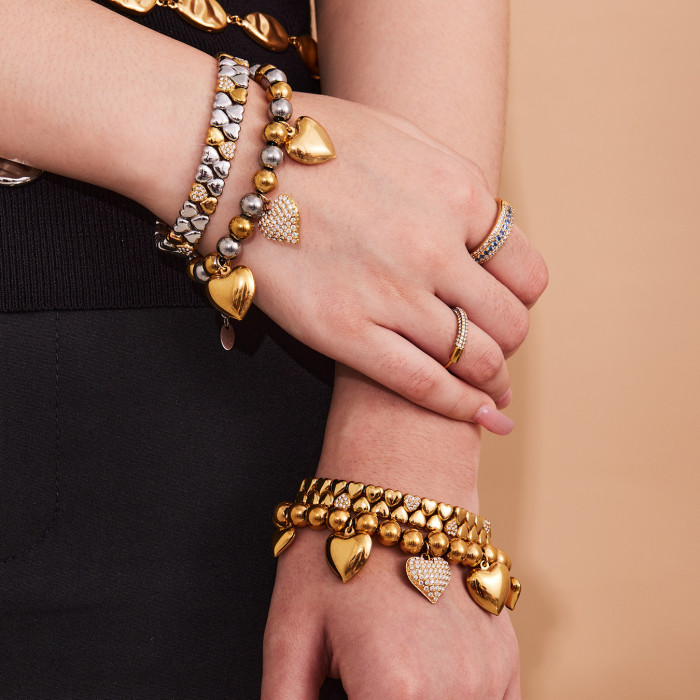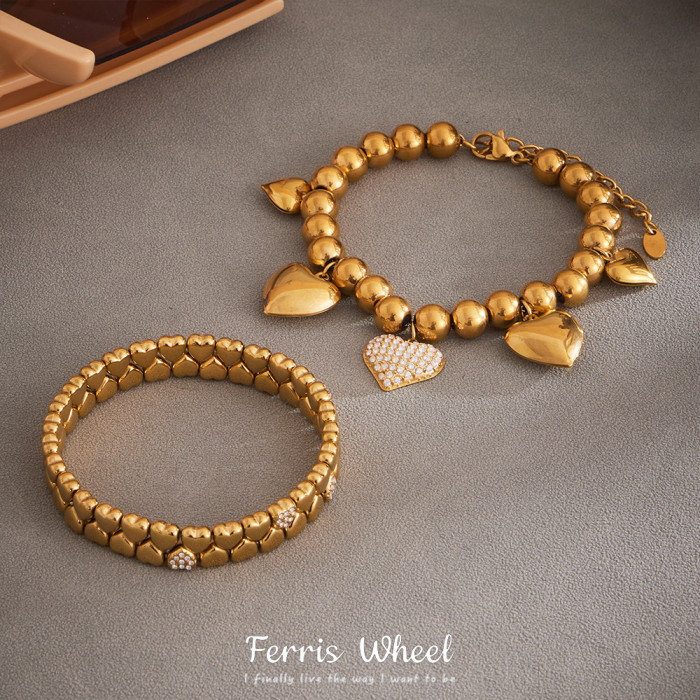 摩天輪中古雙層愛心鑲鑽手鐲女款愛心圓珠彈力繩手鏈氣質曡戴手飾