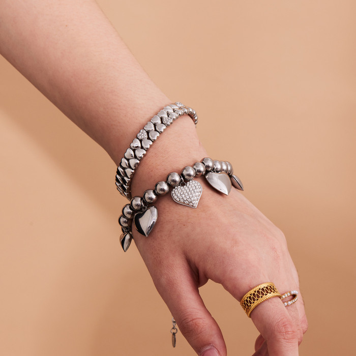 顔色 E373-鋼色愛心鋯石手鏈17+5cm