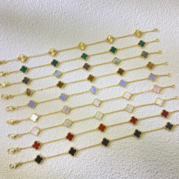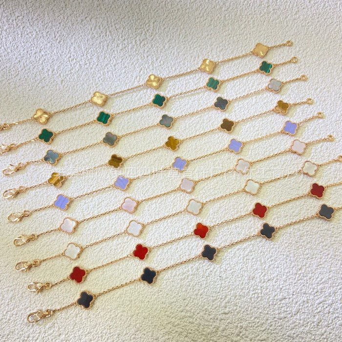 新款四葉草迷你五花手鏈女18k金高版本雙面幸運草白貝母不掉色