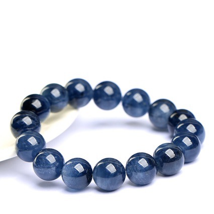 天然7A滿肉藍兔毛手鏈 藍水晶兔毛髮晶圓珠手串散珠批
