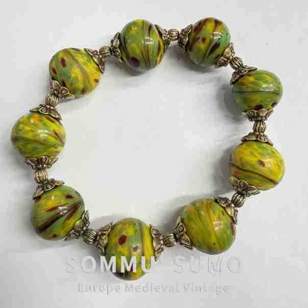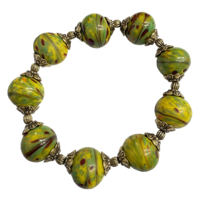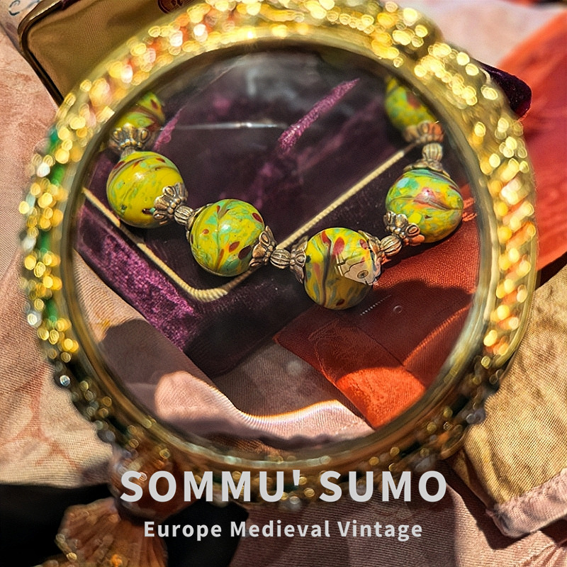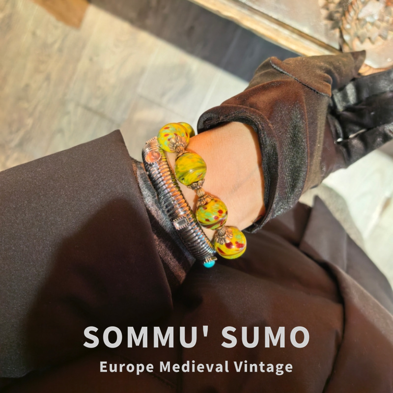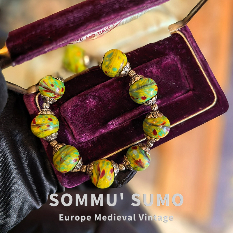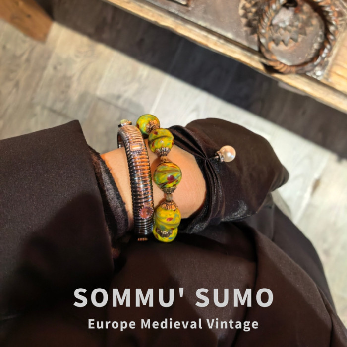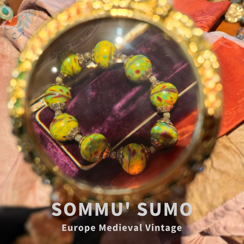 Vintage中古琉璃鳳尾搭配老金工藝配件復古款手鏈 大小都可珮戴