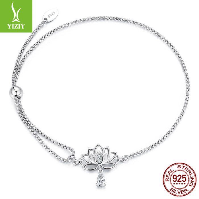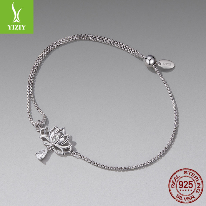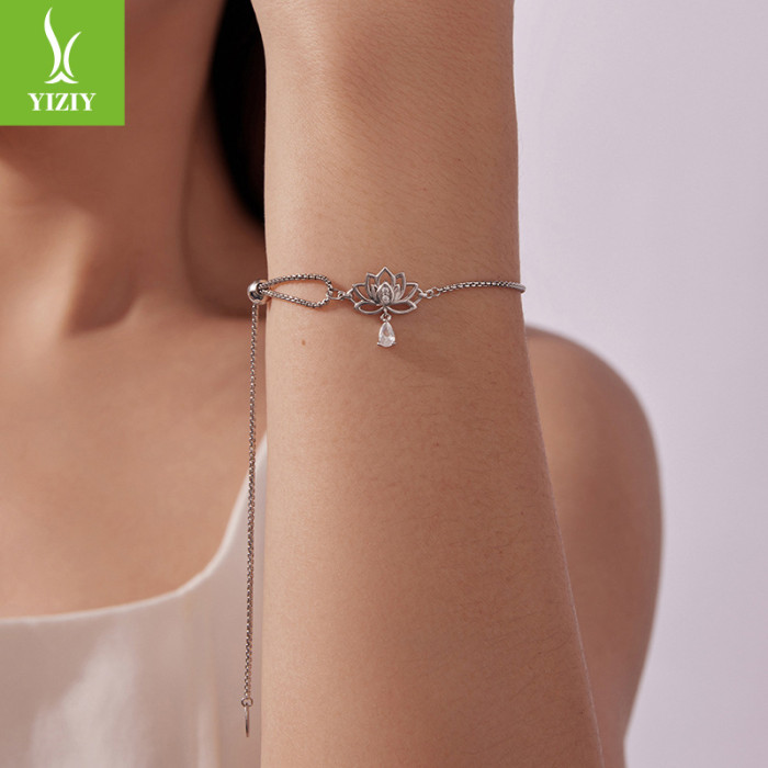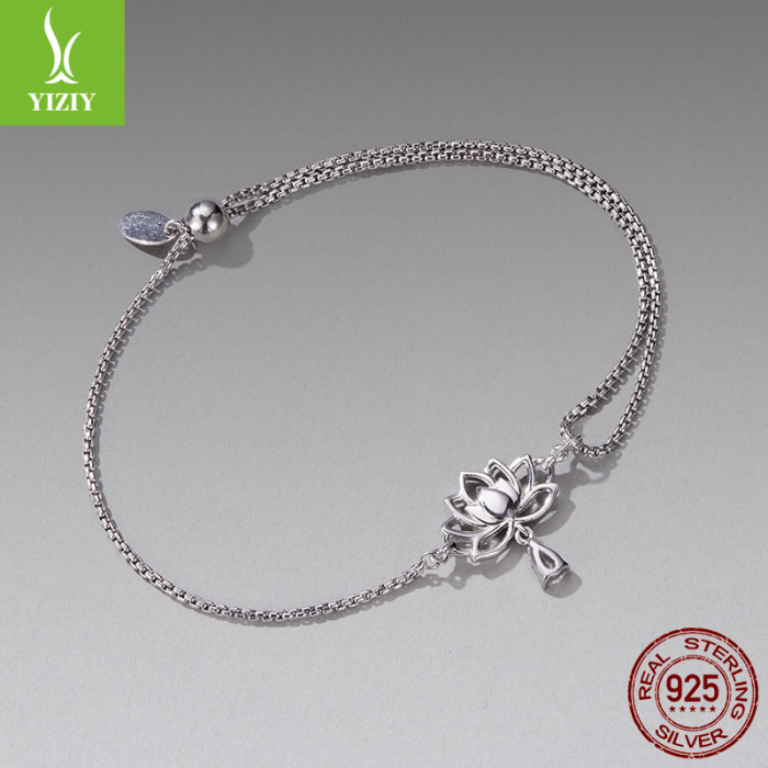 銀姿韻原創可調節蓮花抽拉繩手鏈小衆優雅s925純銀花朵手鏈