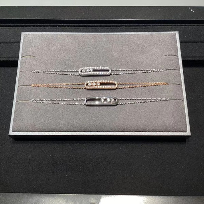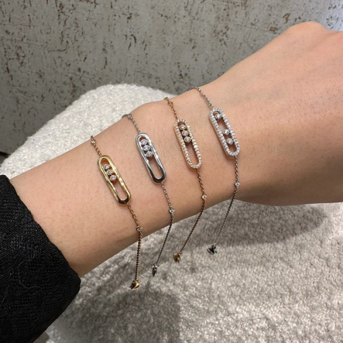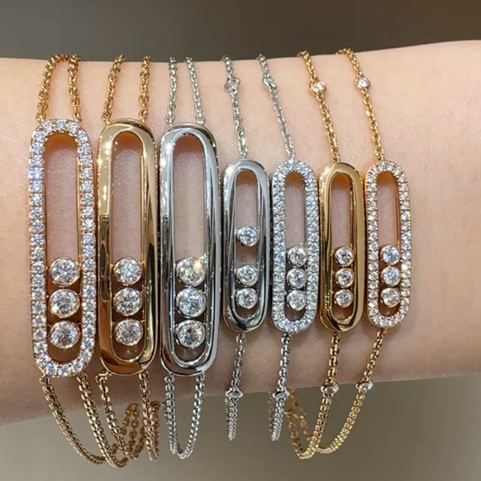 2025梅家滿鑽光面三鑽滑動大牌手鏈雙層設計玫瑰金白金高級感首飾