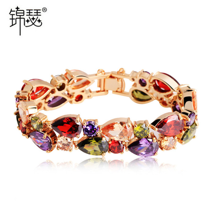 錦瑟 矇娜麗莎鋯石手鏈歐美ins女士簡約手飾彩虹配飾