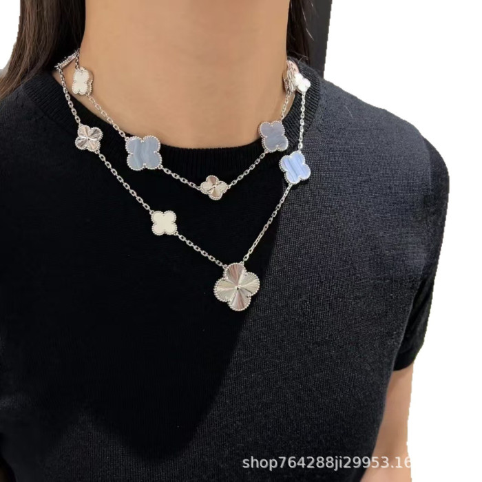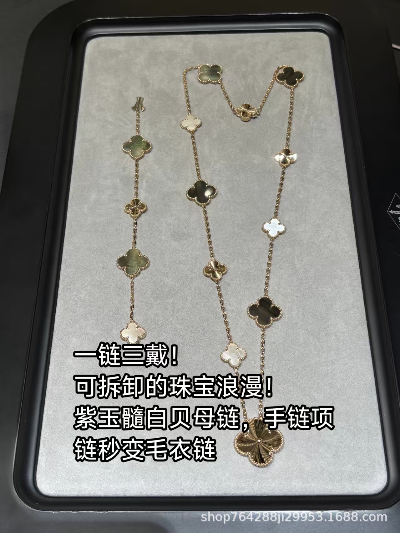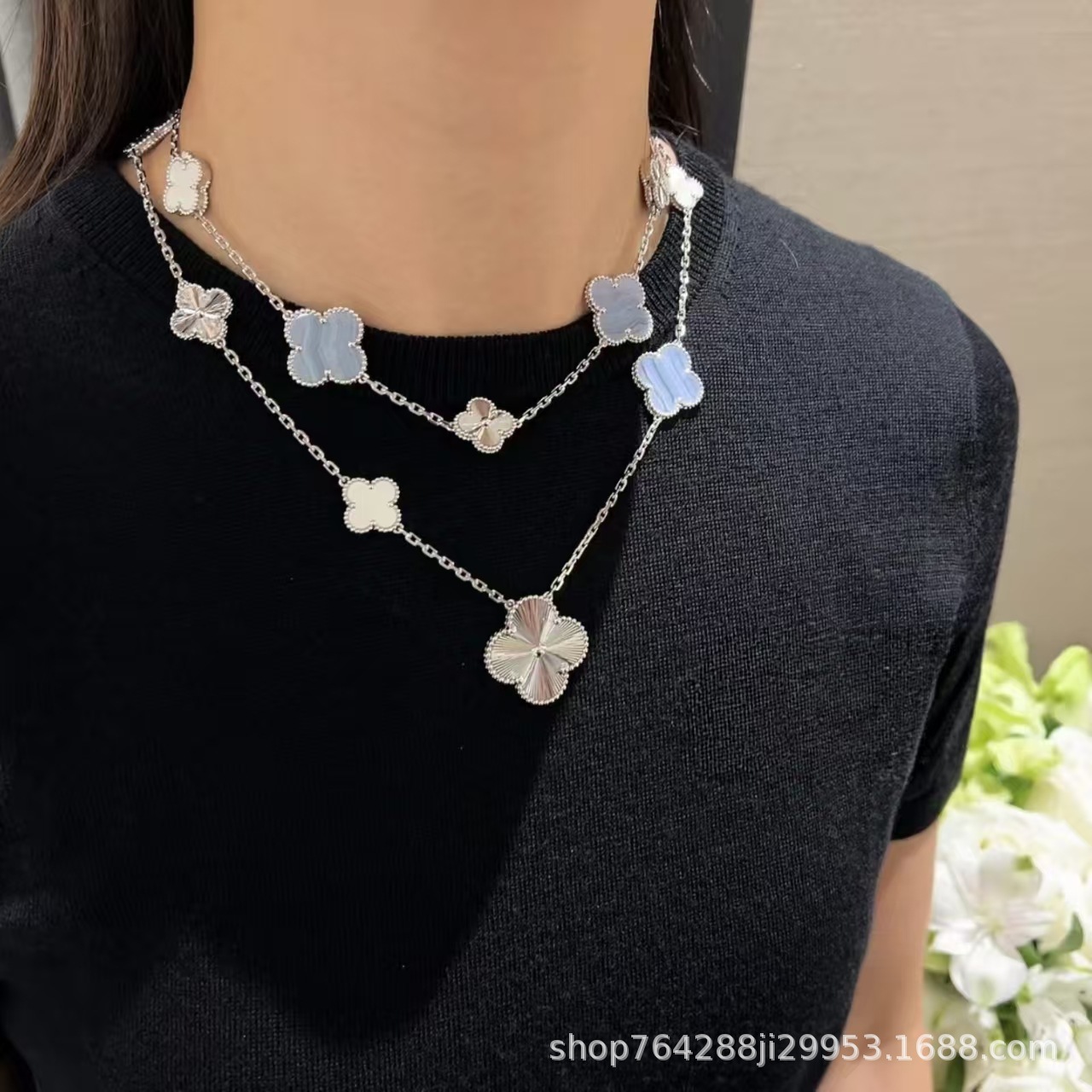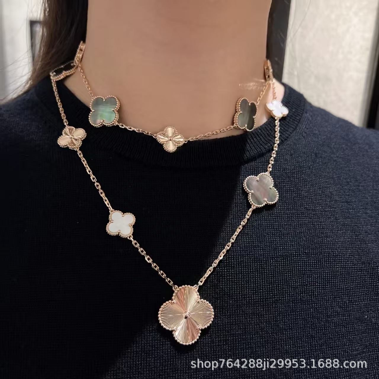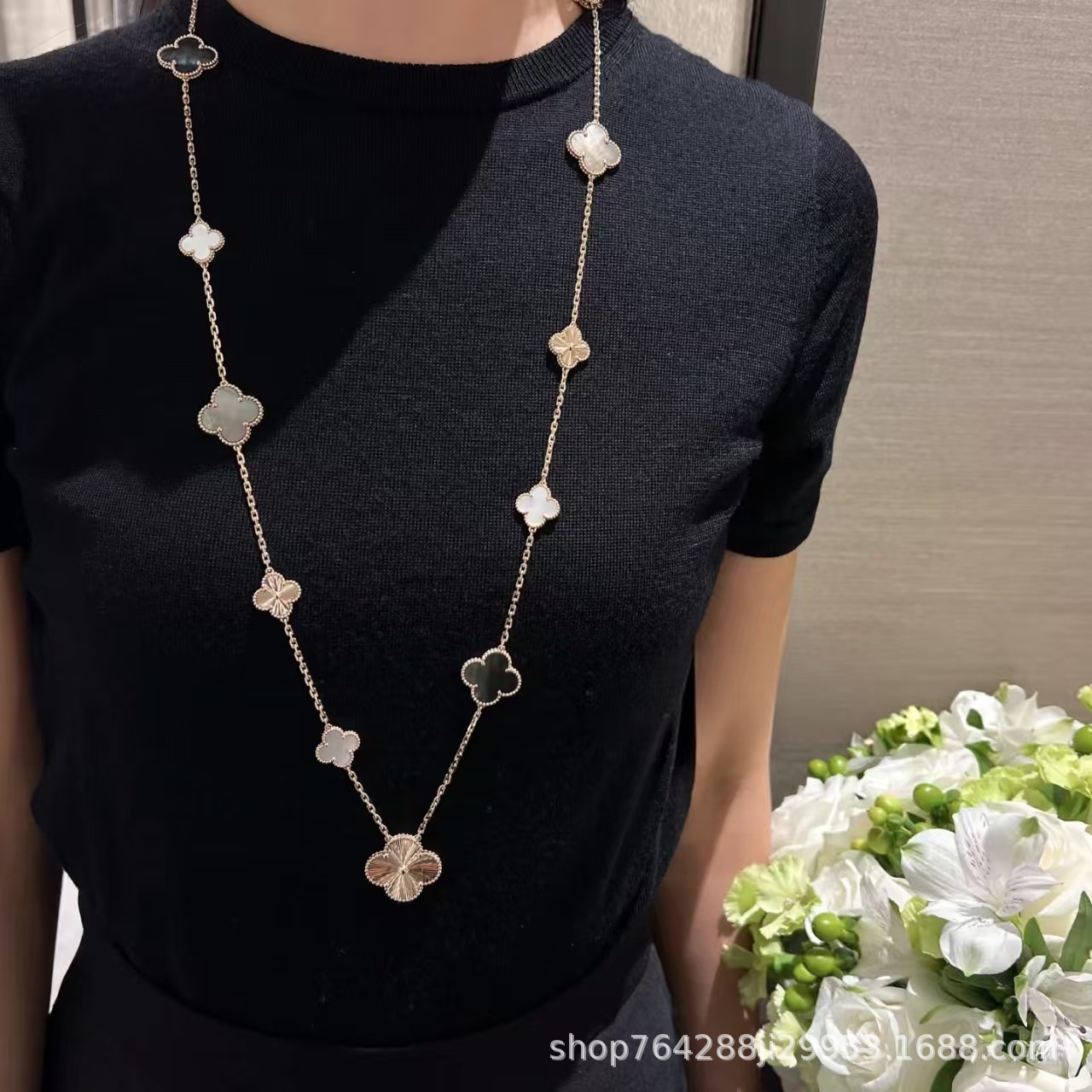 高版大小四葉草11+4拼接15花毛衣鏈二合一項鍊輕奢高級高級手鏈