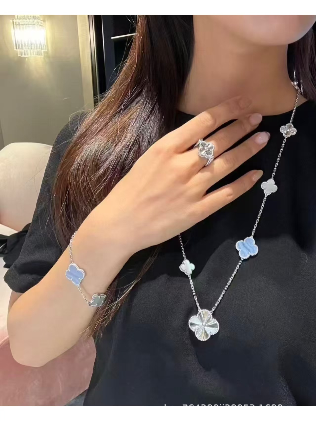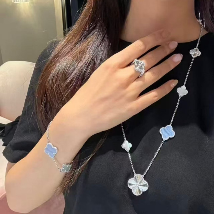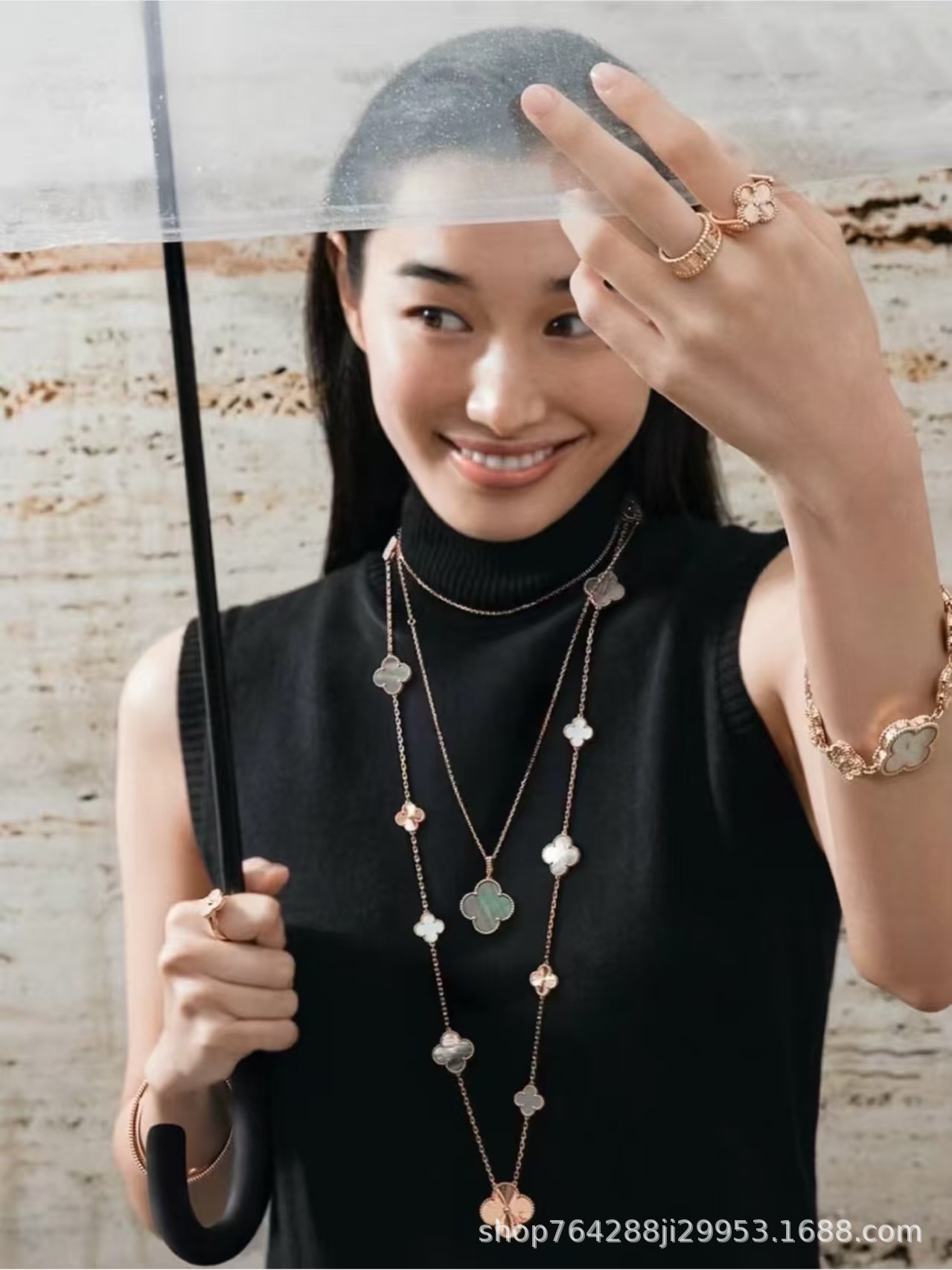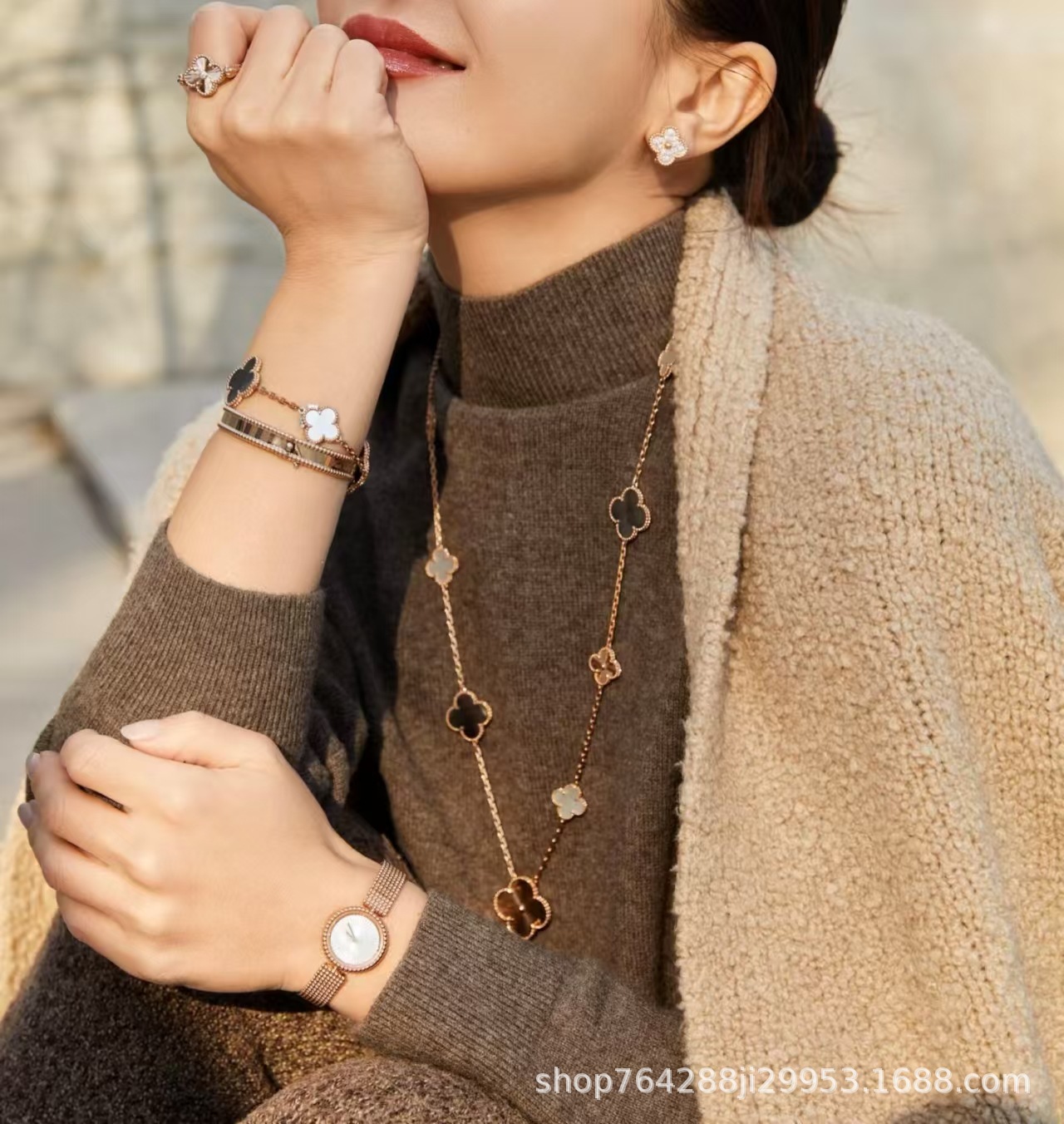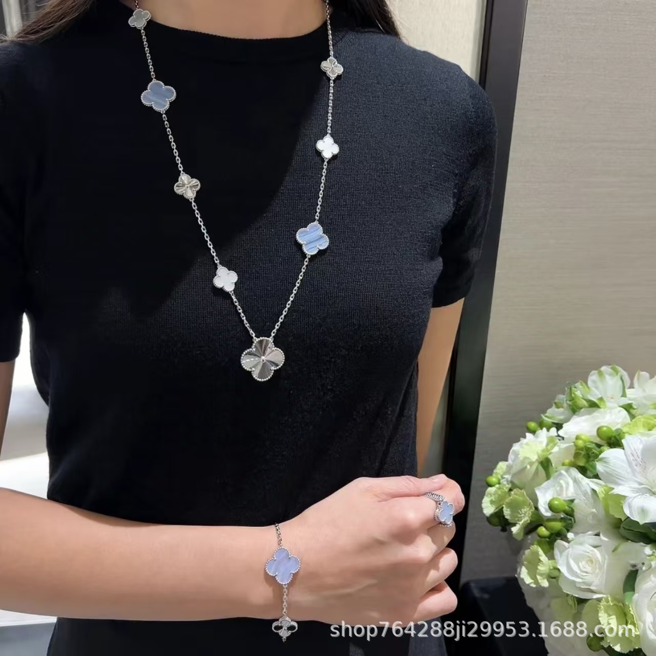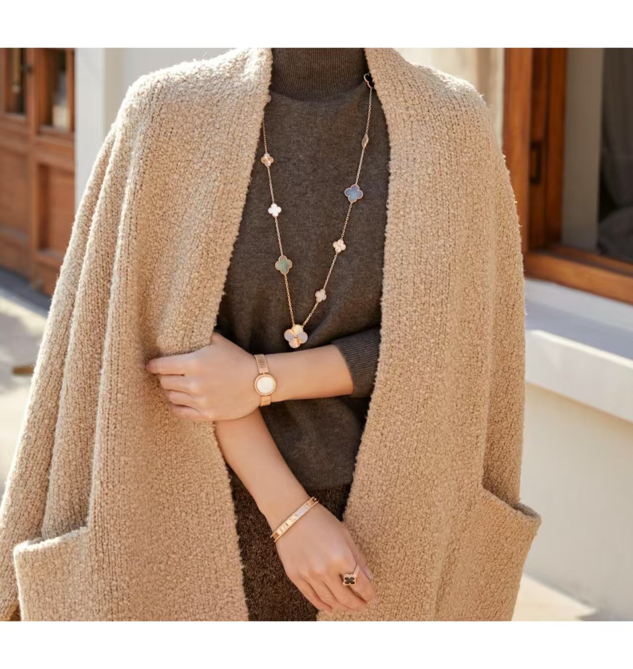 高版大小四葉草11+4拼接15花毛衣鏈二合一項鍊輕奢高級高級手鏈