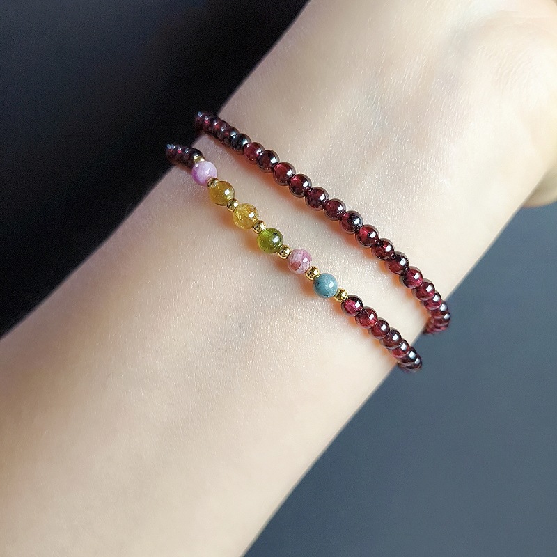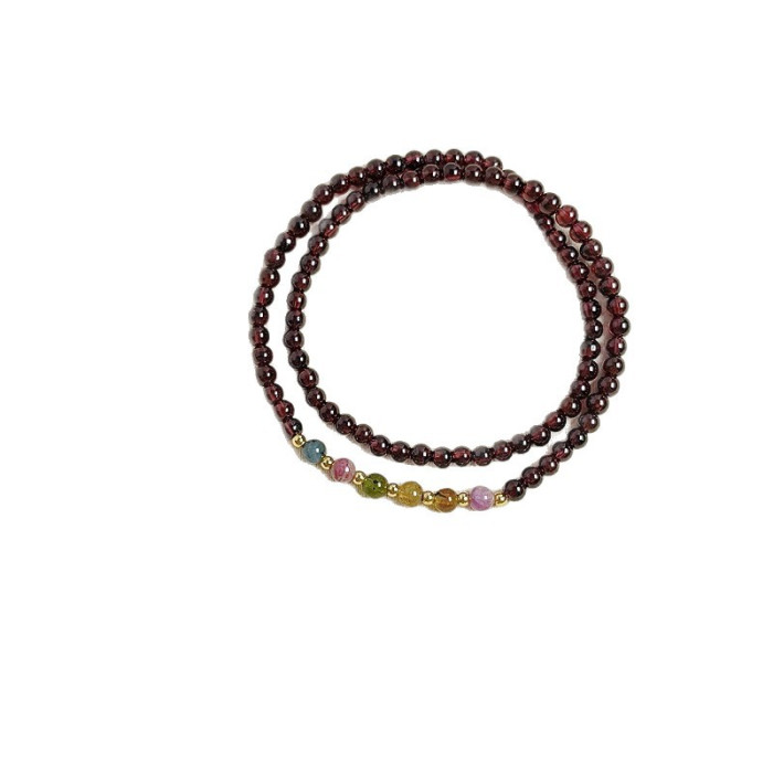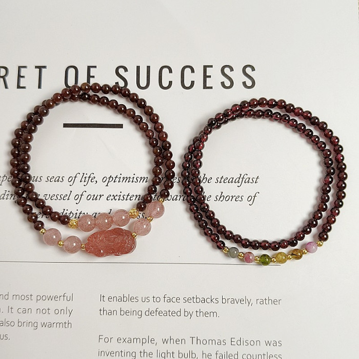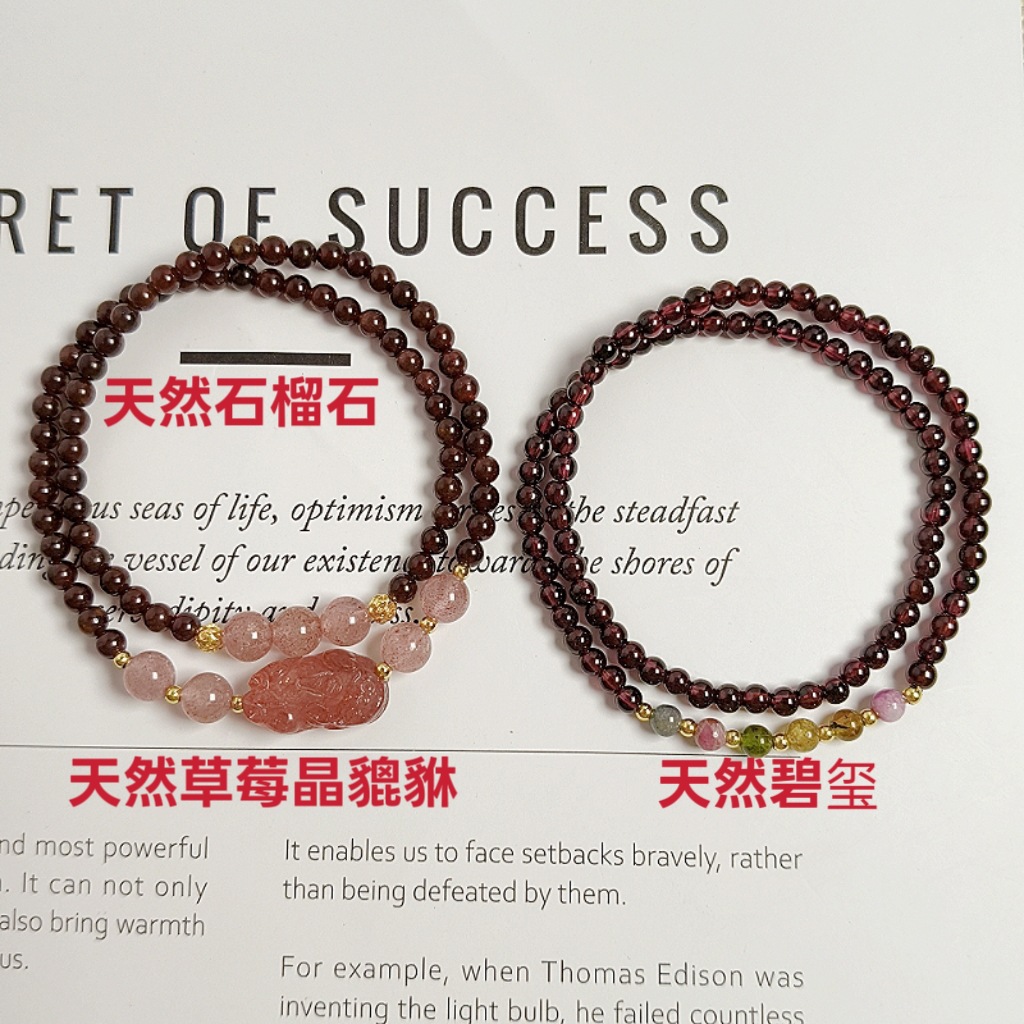 顔色 4mm天然石榴石草莓晶貔貅雙圈手鏈