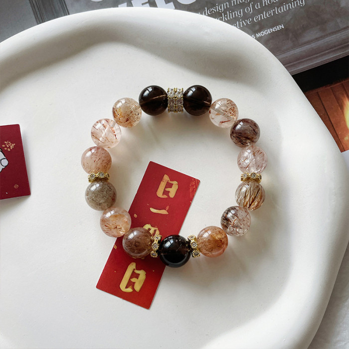 【金霸主】黑金超七天然水晶手串茶晶招米原創手串小紅書爆款手鏈
