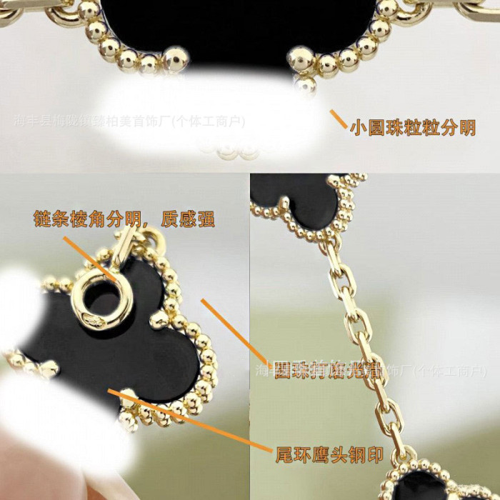 高版V金梅隴四葉草五花手鏈痩花高貨紅玉髓白貝母鍍18K玫瑰金輕奢
