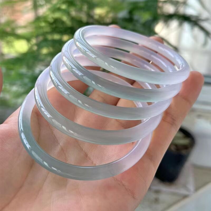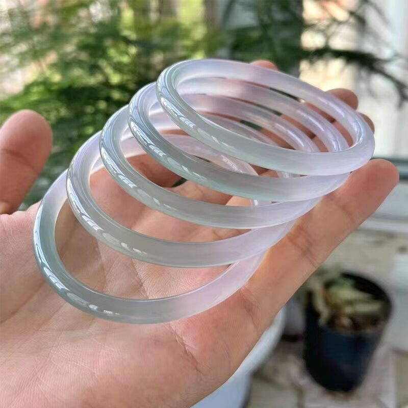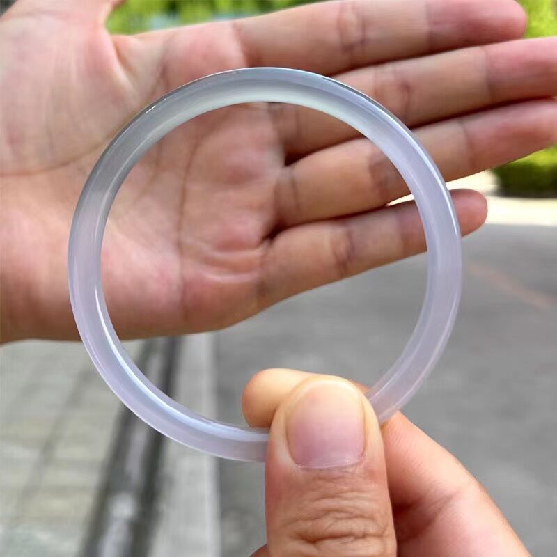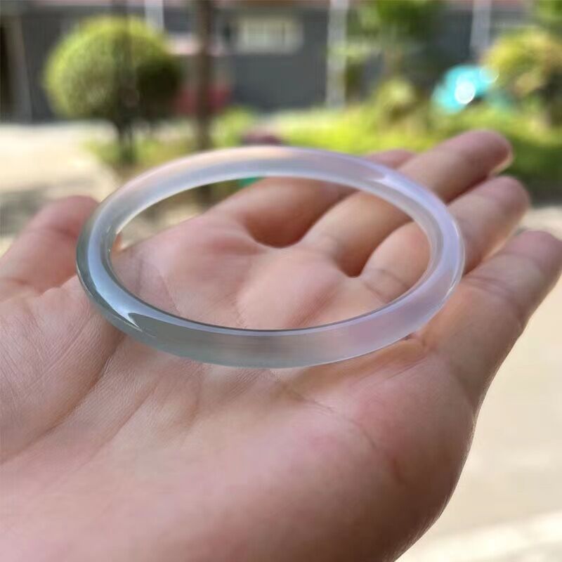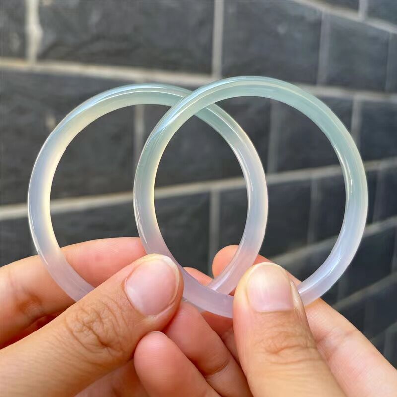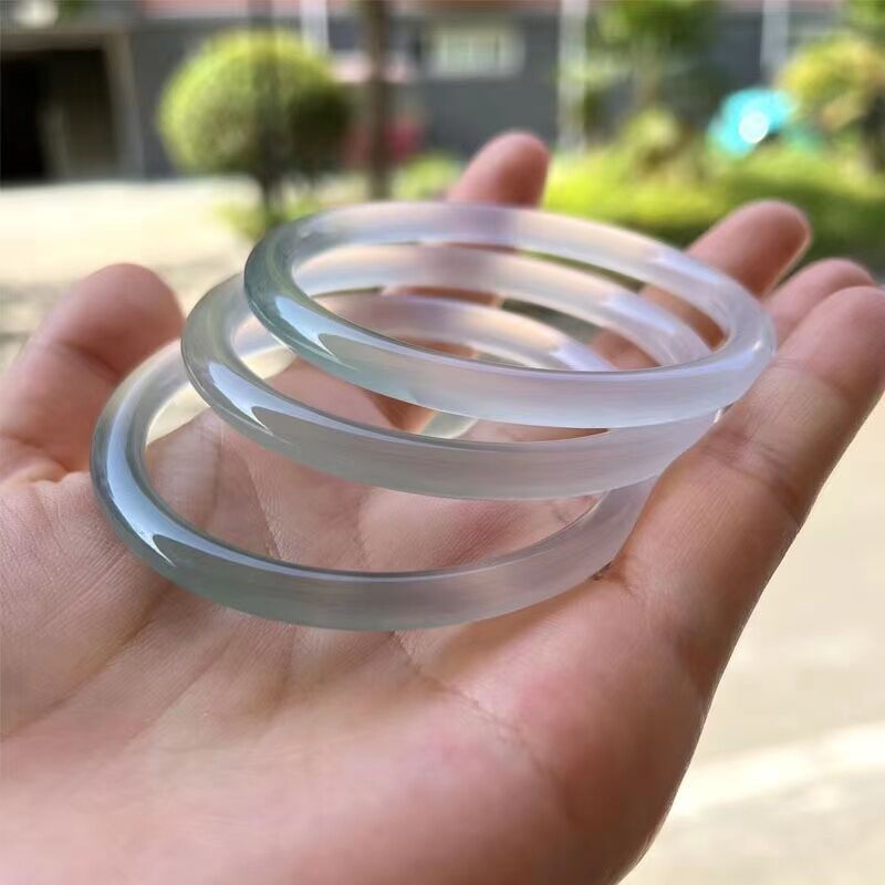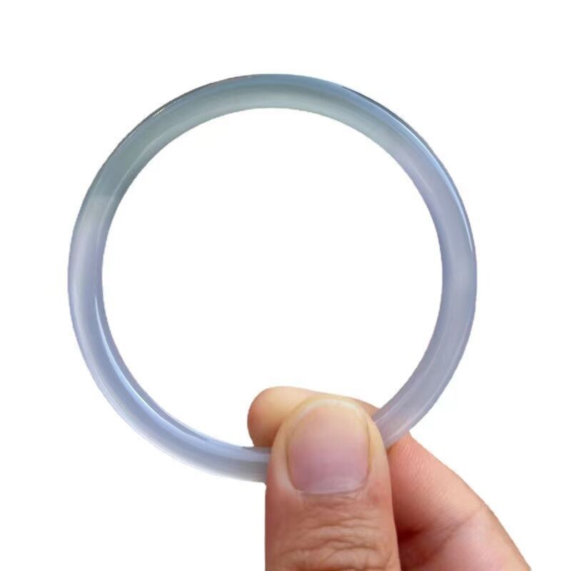 半山半水油青色漸變玉髓手鐲少女款細圓條美人叮噹鐲瑪瑙鐲子淺釉