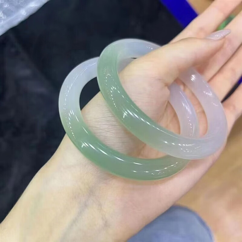 玉髓鐲子瑪瑙手鐲少女款半山半水冰透種圓條荔枝凍油青色漸變正圈