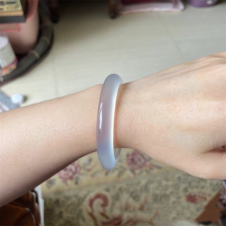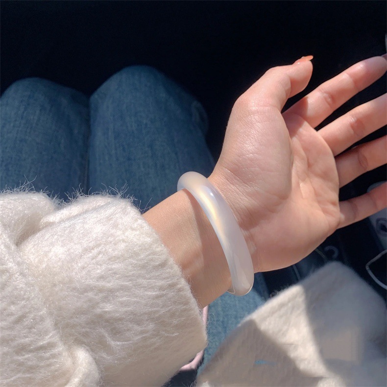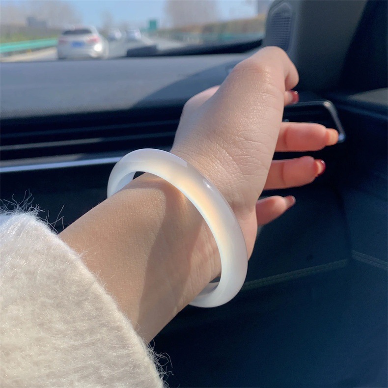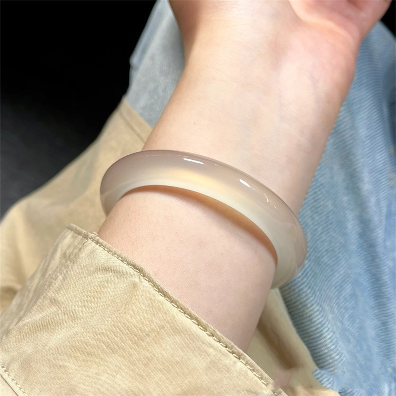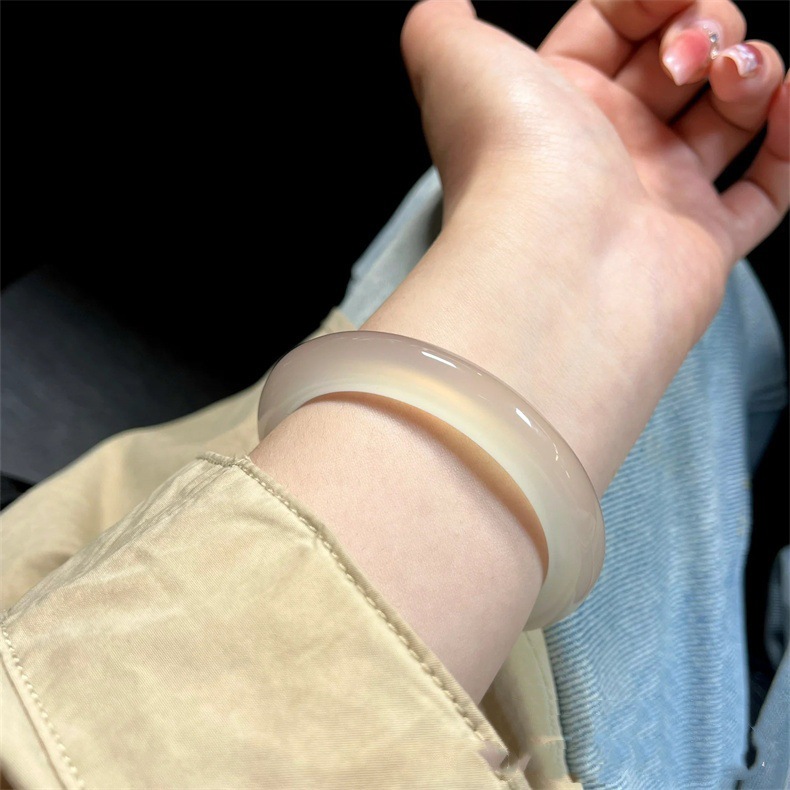 天然高冰馬料香檳色玉髓手鐲輕奢白月光瑪瑙手鐲子少女款馬料素圈