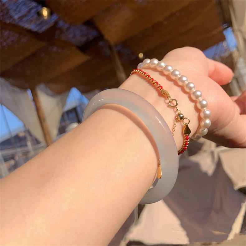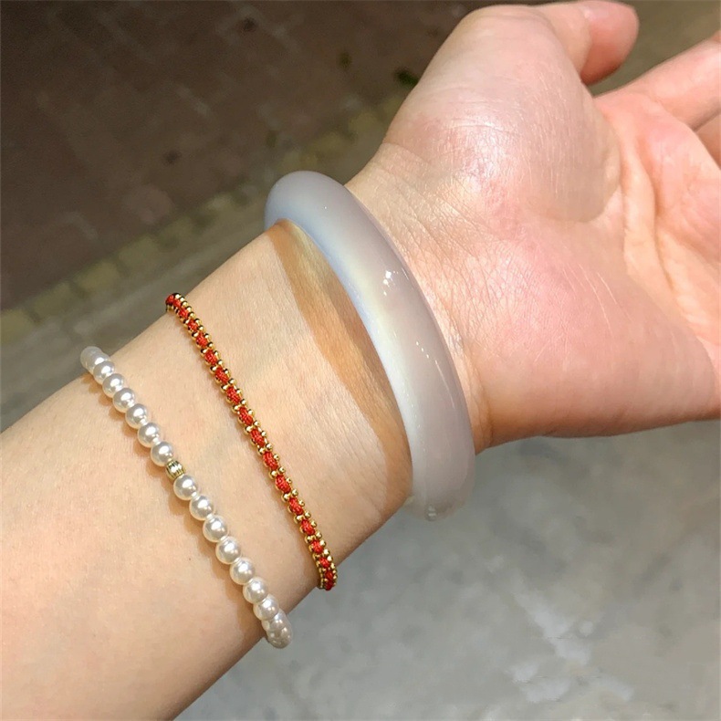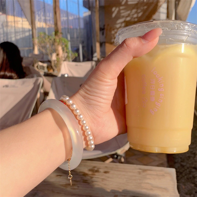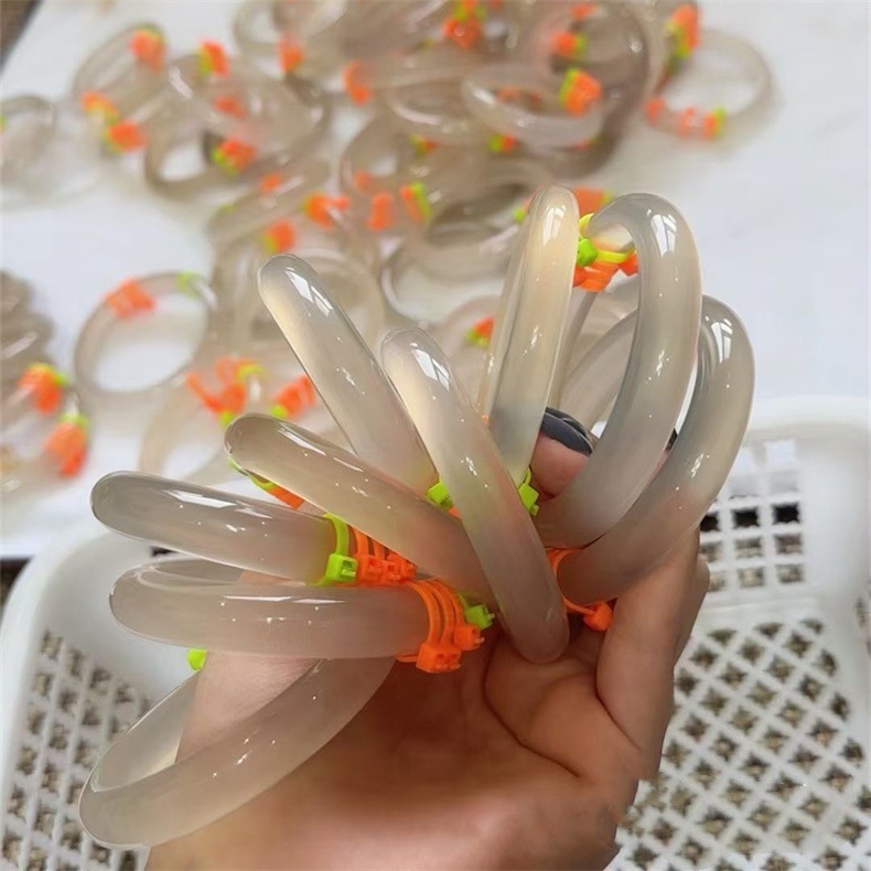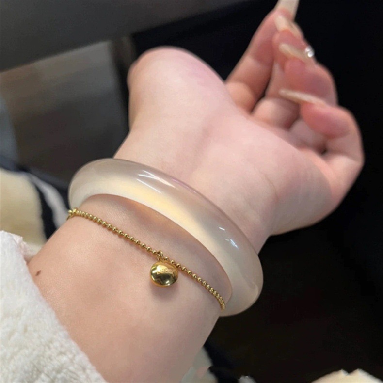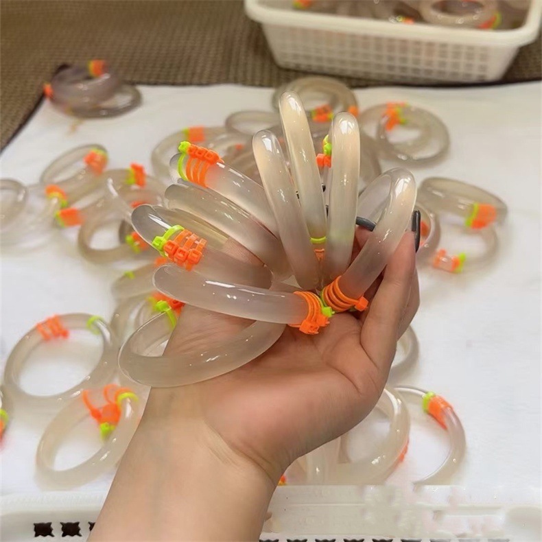 天然高冰馬料香檳色玉髓手鐲輕奢白月光瑪瑙手鐲子少女款馬料素圈