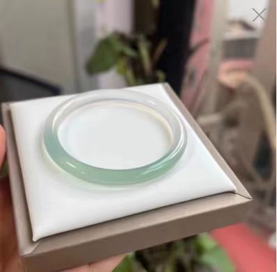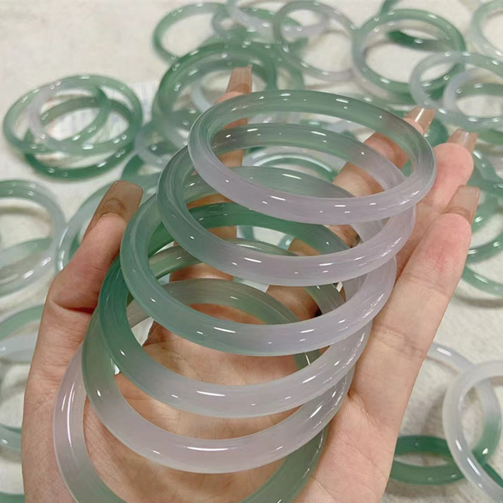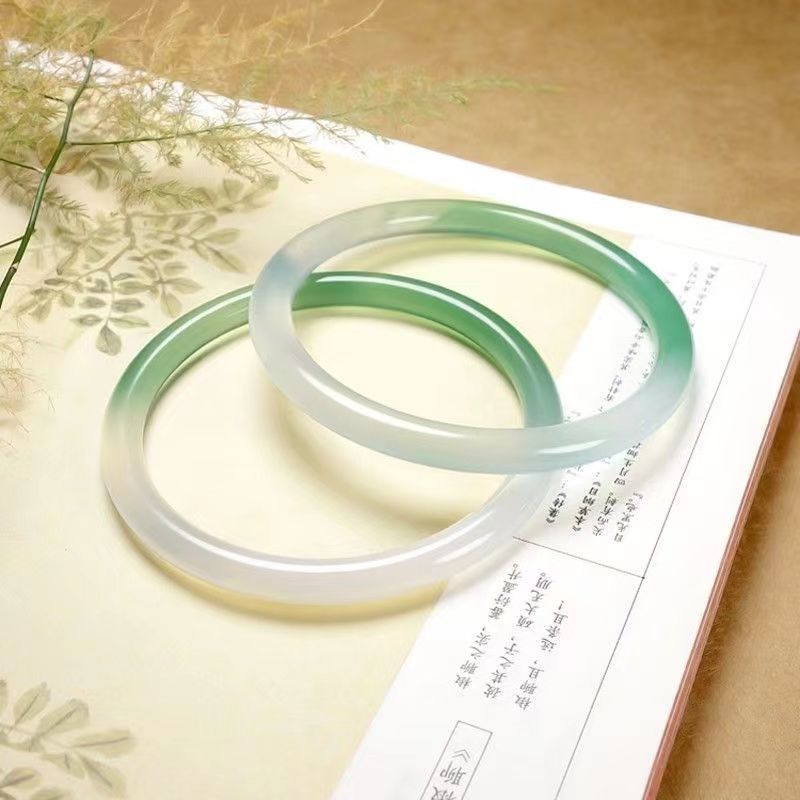 冰種半山半水細圓條玉髓手鐲女款天然玉石翡翠飄花色瑪瑙手鐲