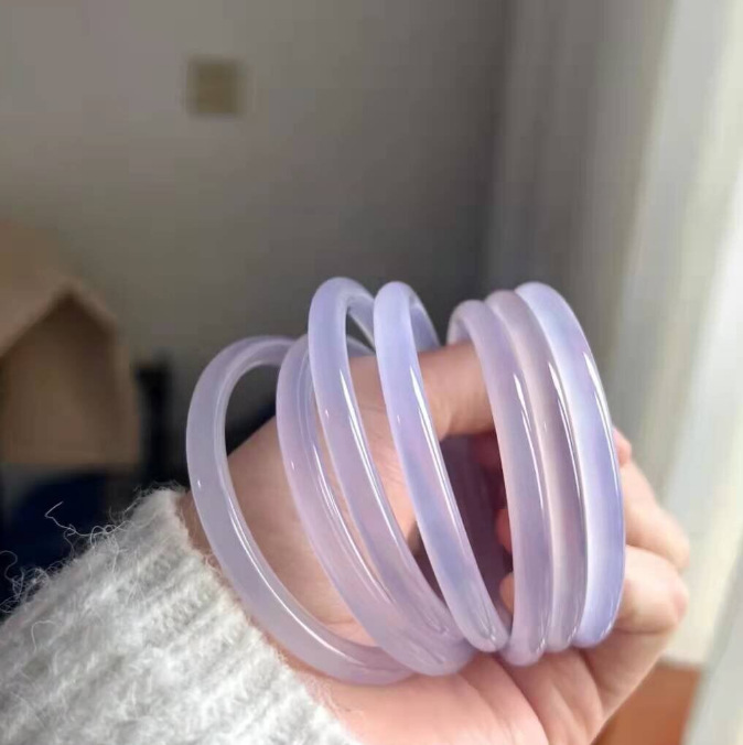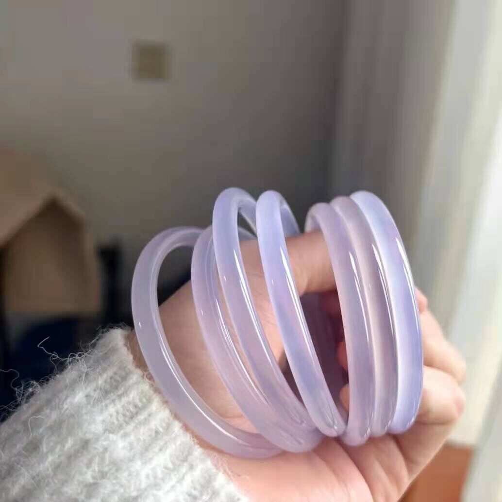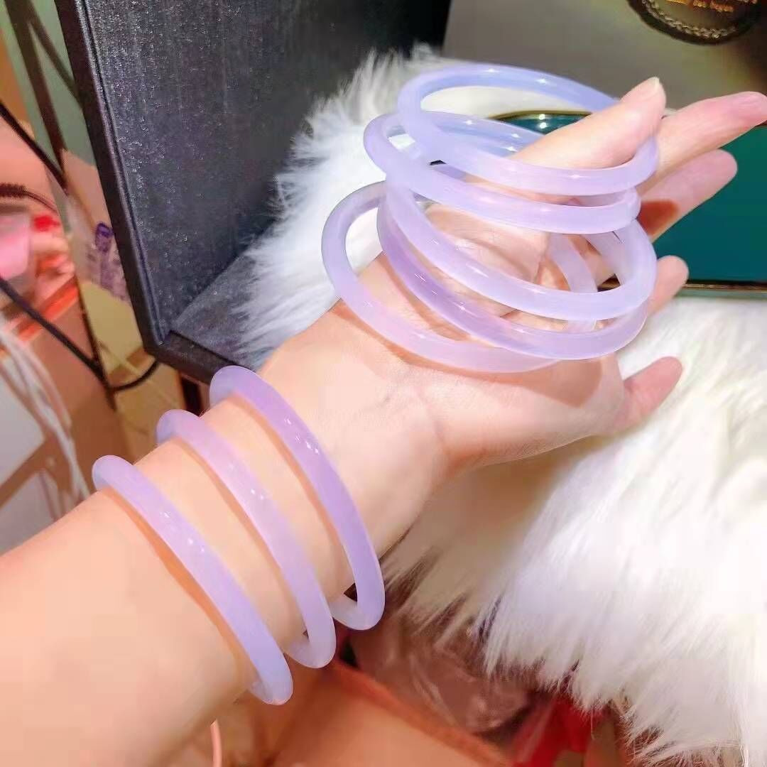 巴西高冰紫羅蘭玉髓手鐲 6MM淡紫瑪瑙女款美人叮噹鐲玉石圓條手鐲