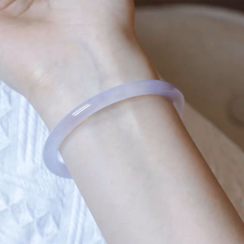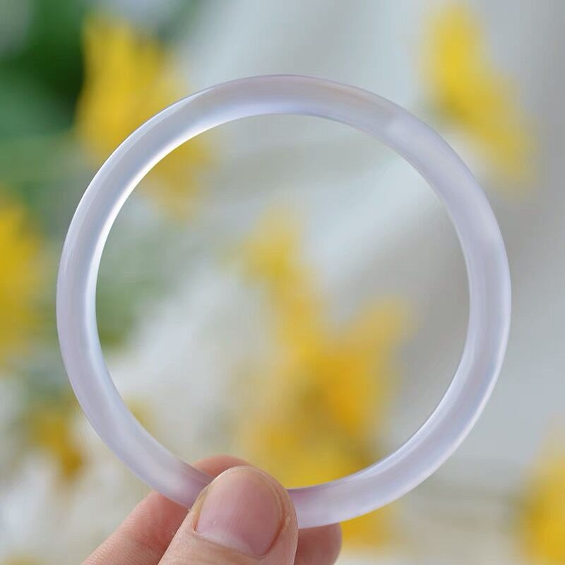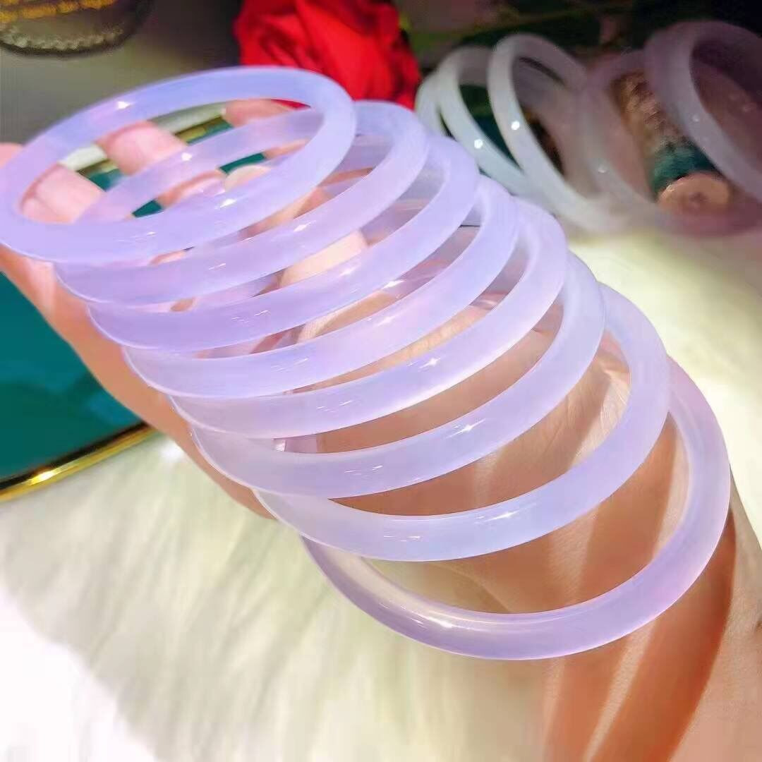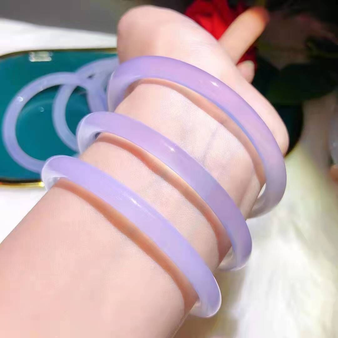 巴西高冰紫羅蘭玉髓手鐲 6MM淡紫瑪瑙女款美人叮噹鐲玉石圓條手鐲