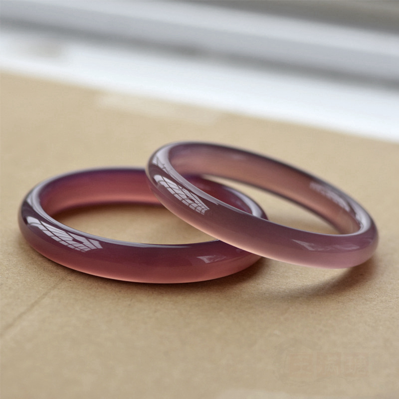 天然冰種帝王紫玉髓手鐲女翡翠色瑪瑙粗圓條美人鐲葡萄紫扁條正鐲