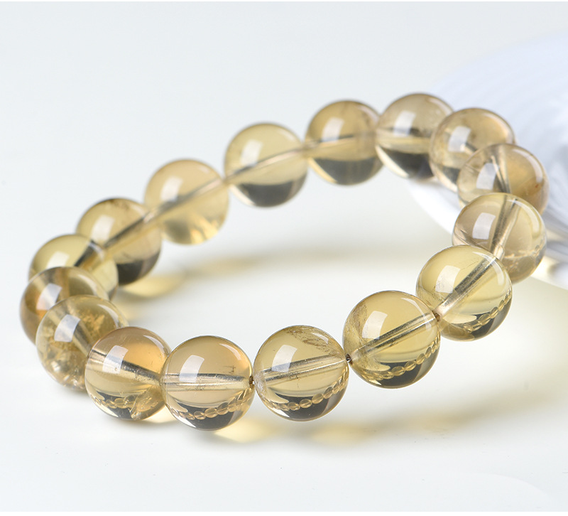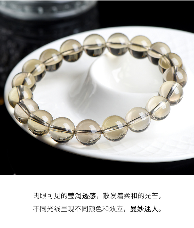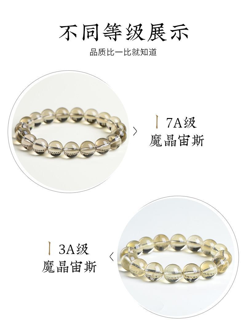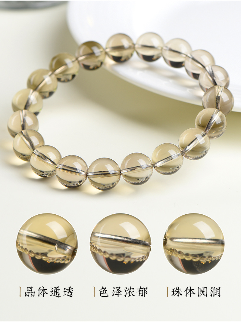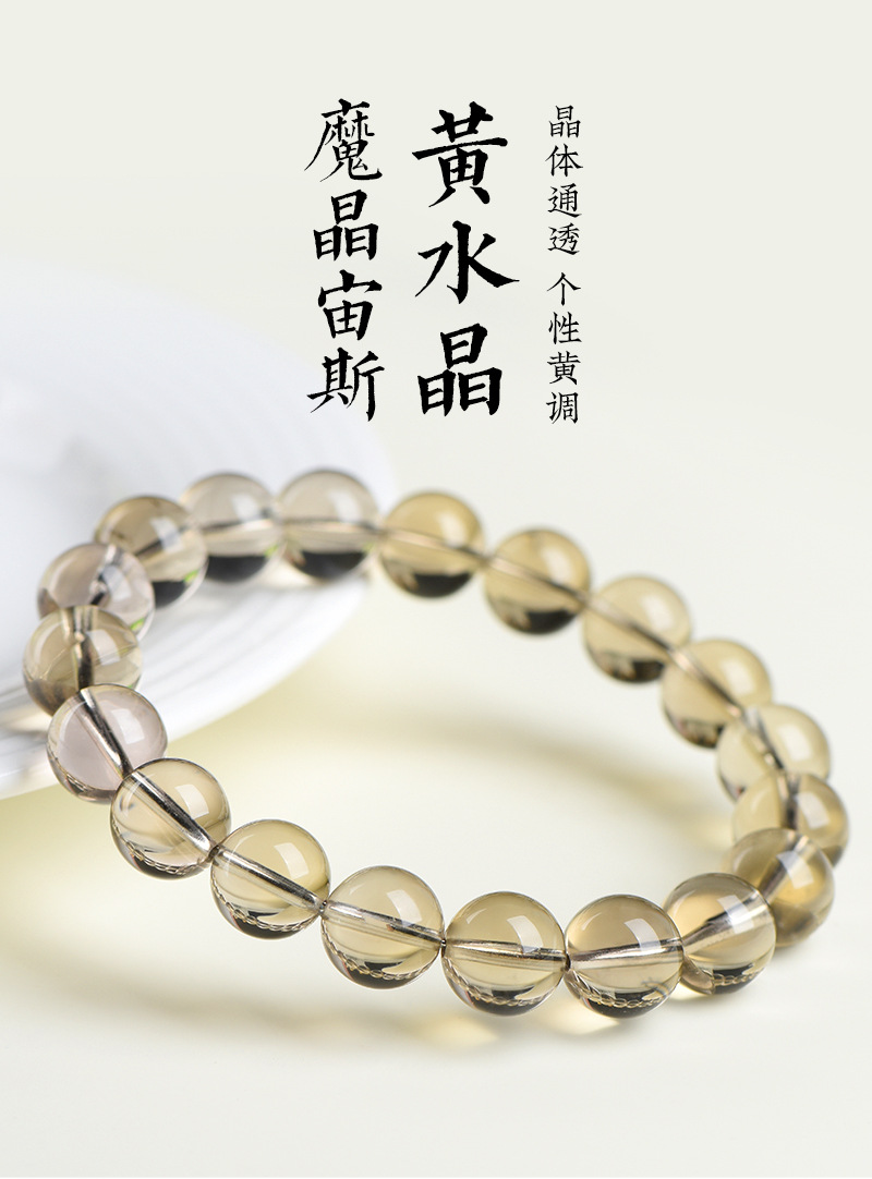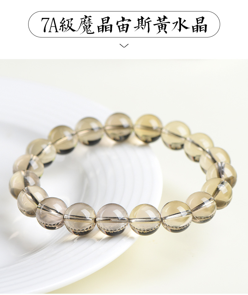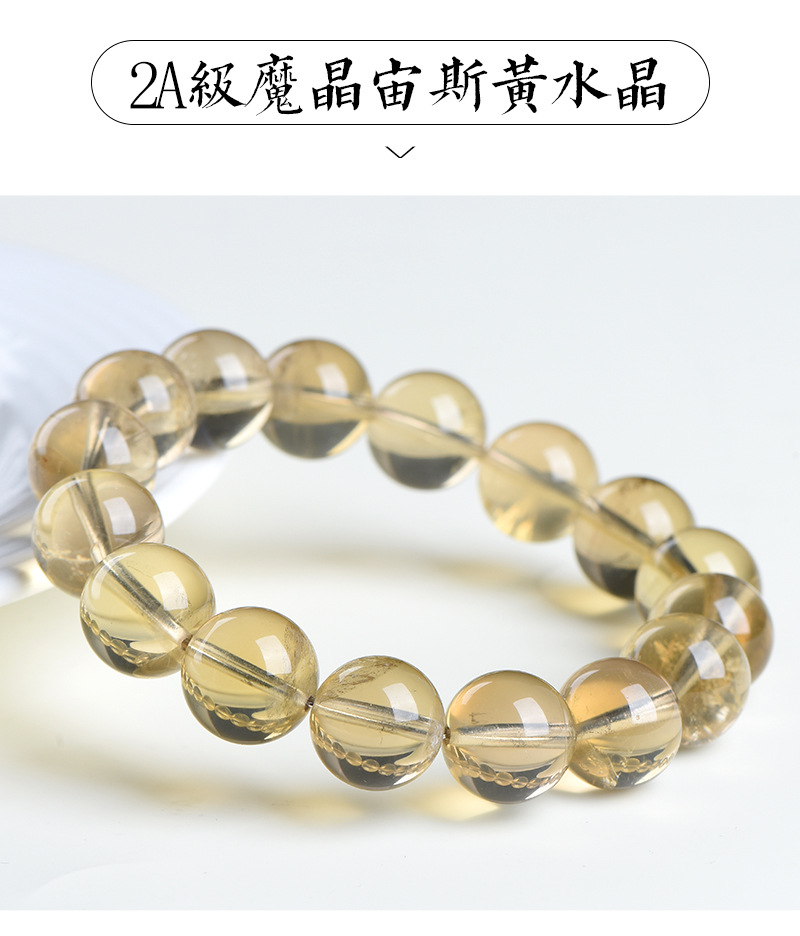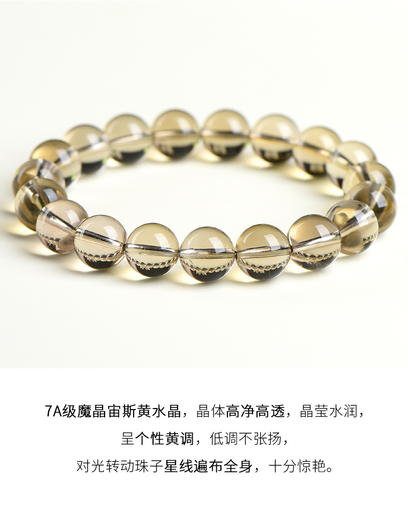 久雅水晶 天然魔晶宙斯水晶圓珠手鏈 茶黃隕石水晶散珠手串