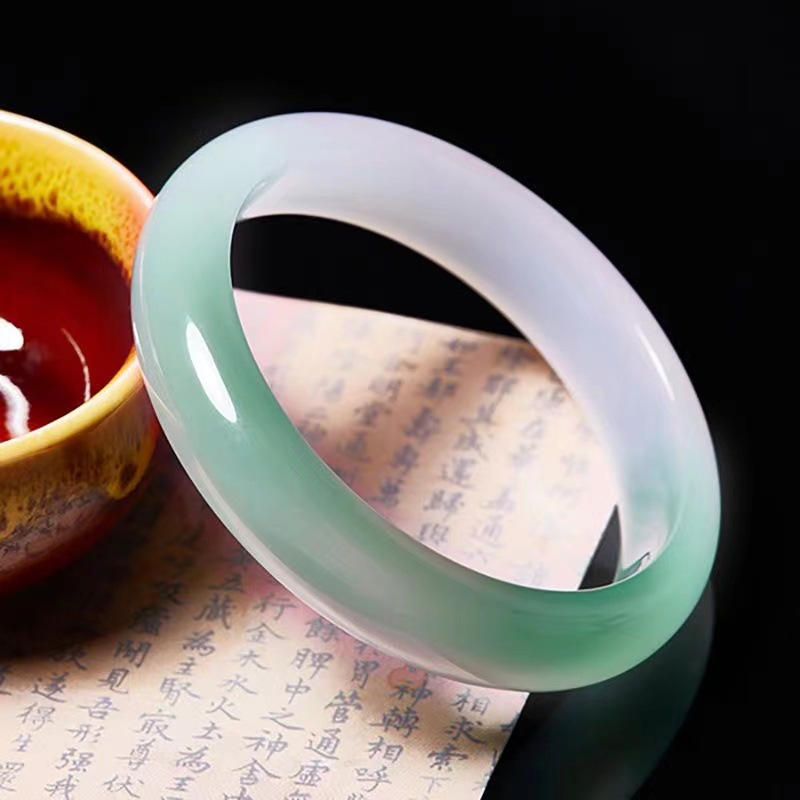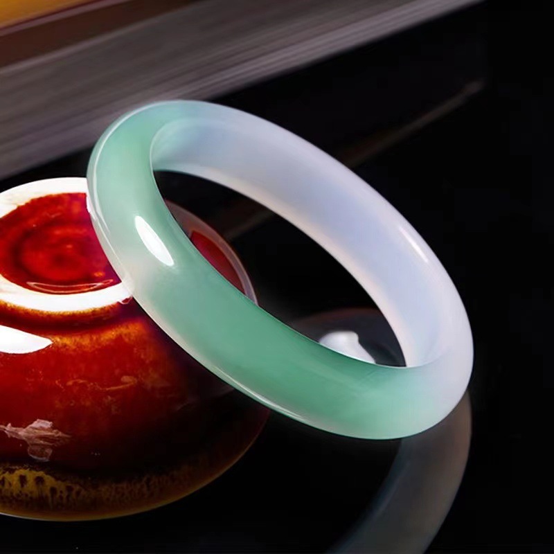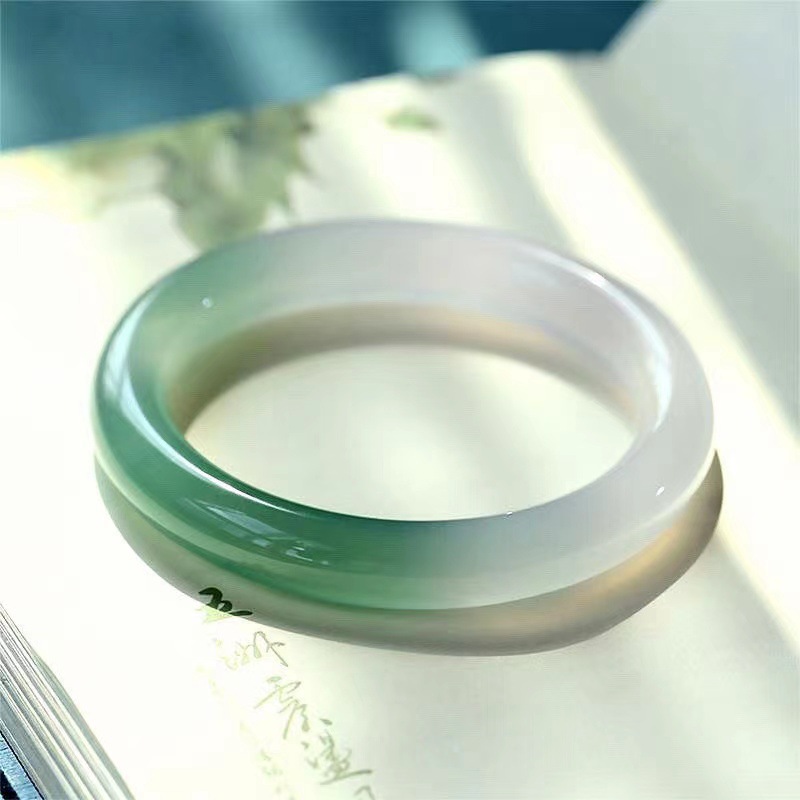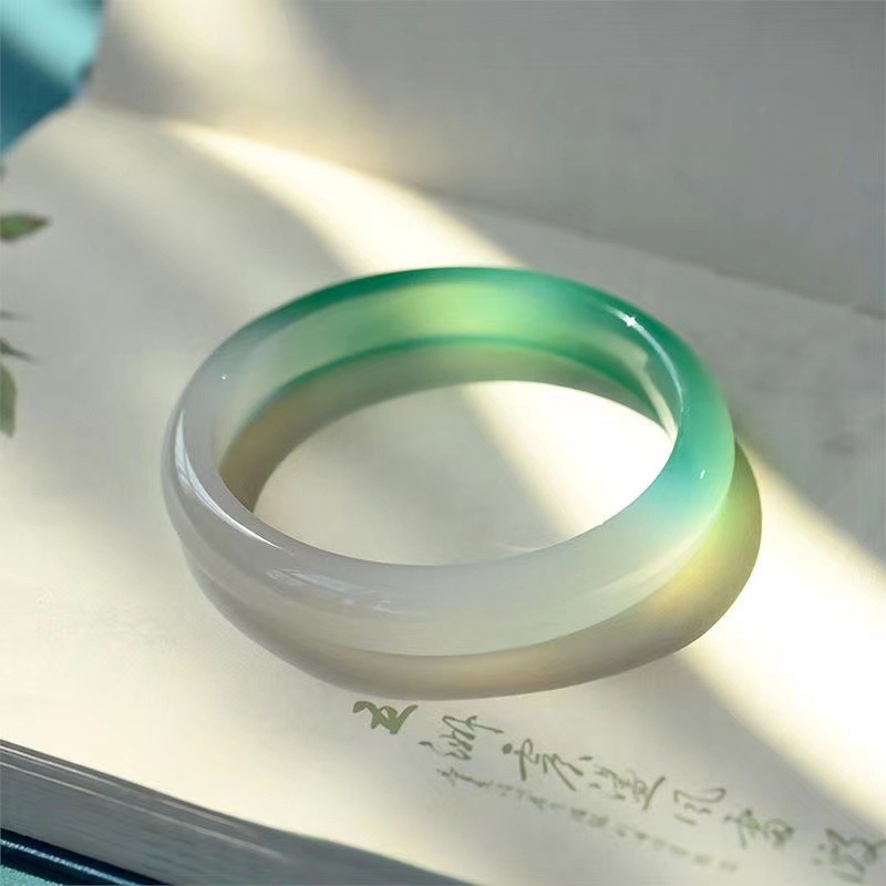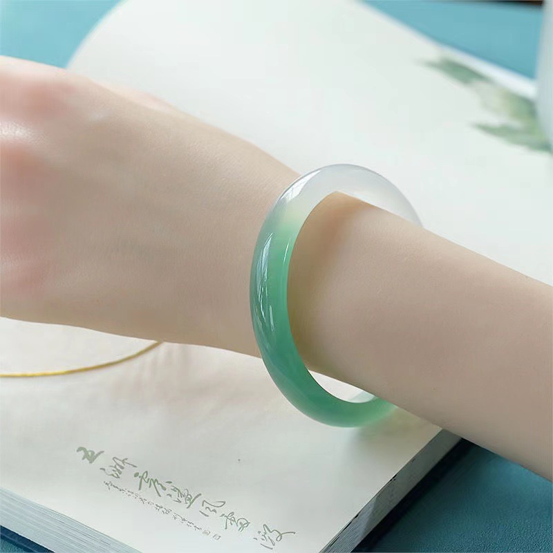 玉髓瑪瑙手鐲油青高冰透冰種半山半水玉石叮噹鐲女細圓條美人鐲子