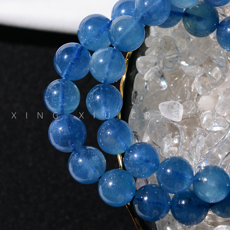 星宿家天然鬼藍色海藍寶石手鏈女摩根藍綠綠柱石水晶手串男福神石