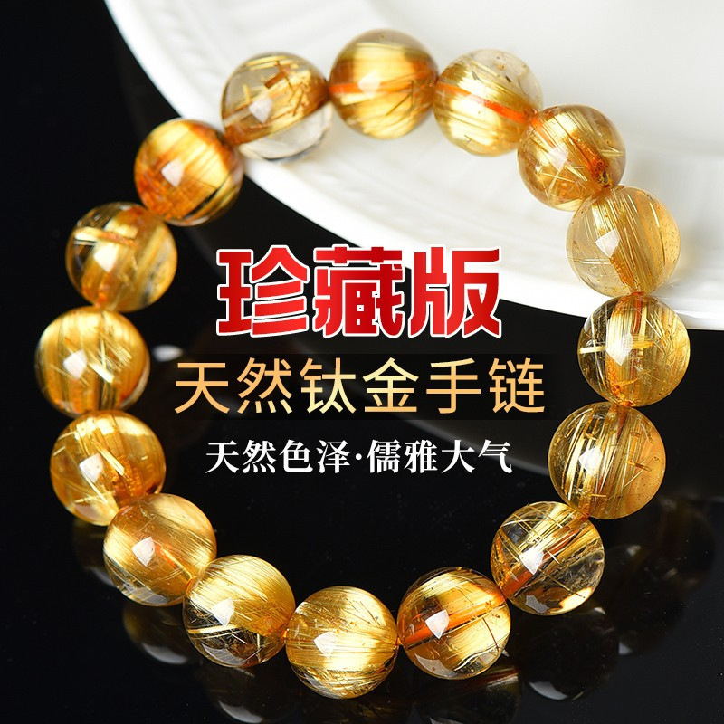 巴西金鈦晶天然金髮晶手鏈原石水晶手串男手飾女黃髮晶飾品情侶串