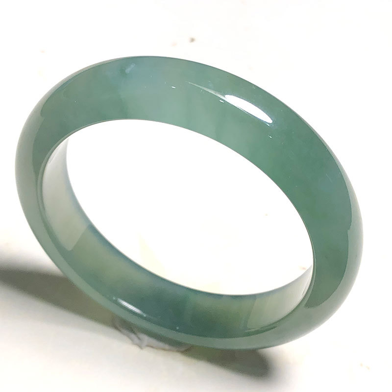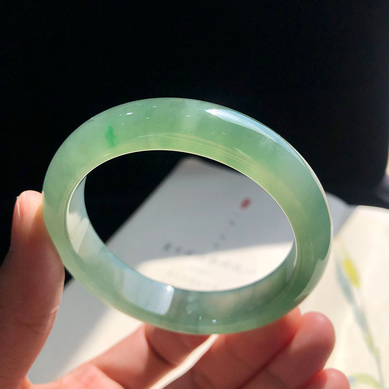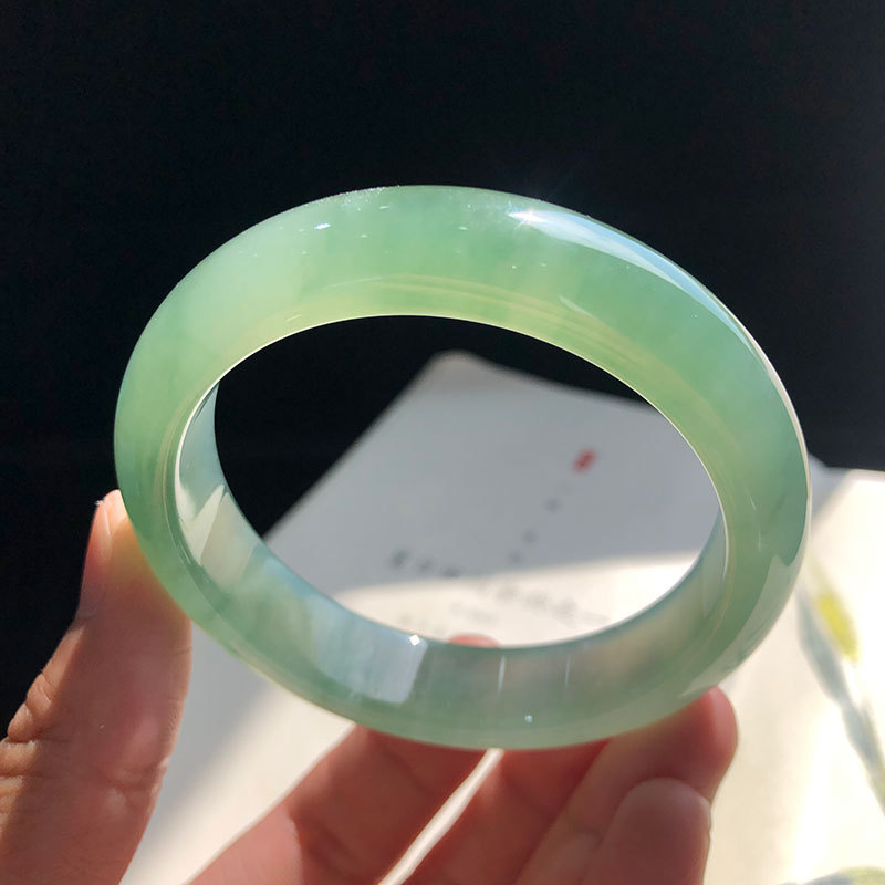 天然緬甸翡翠玉手鐲女款冰湖水綠正圈冰種油青淺綠單色翡翠手鐲子
