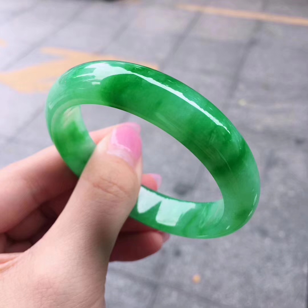 冰種陽綠飄花翡翠手鐲貴妃鐲天然緬甸冰糯種翡翠玉手鐲少女款時尚