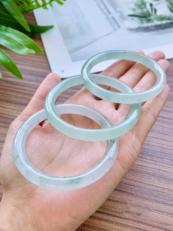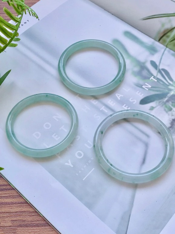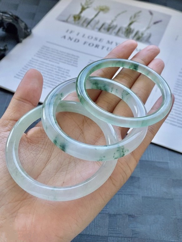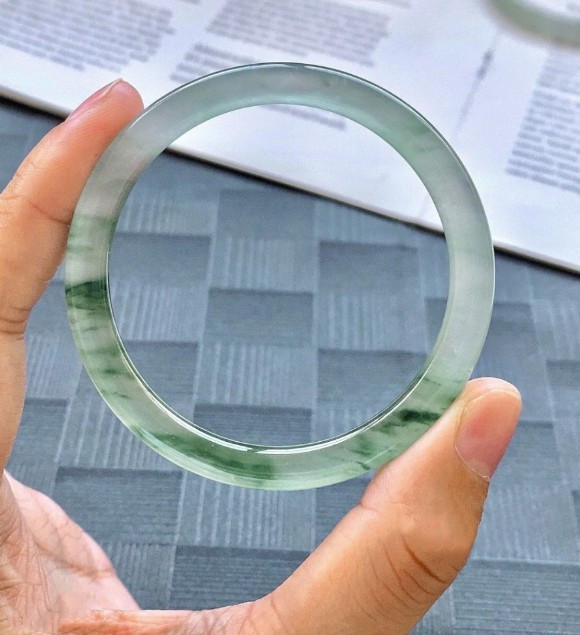 【】叮噹鐲天然緬甸飄花翡翠手鐲女款翡翠玉手鐲圓條冰種時尚