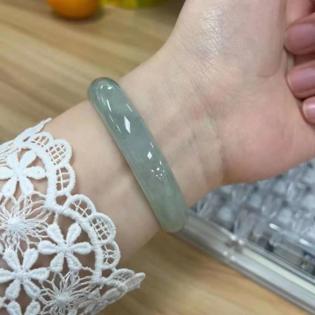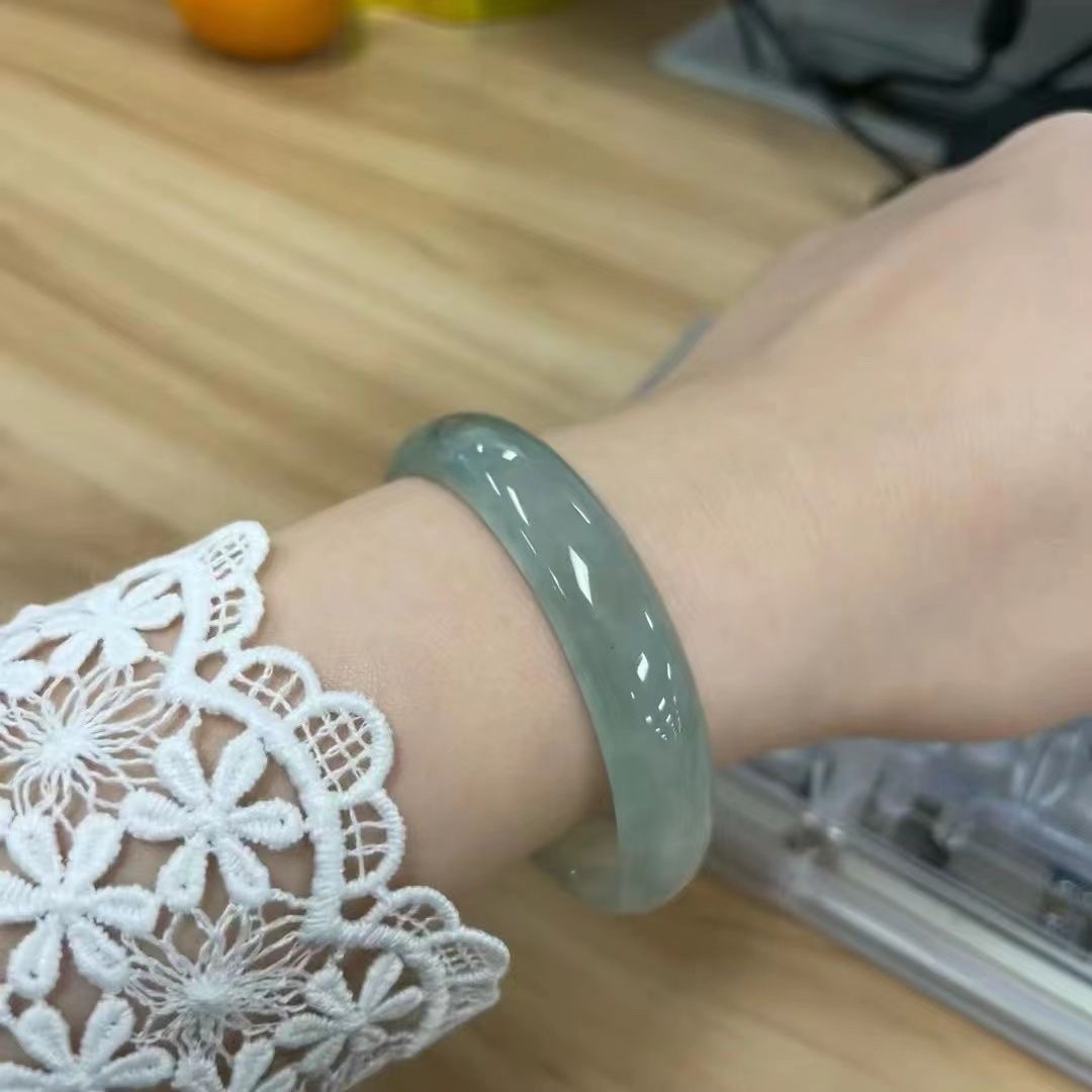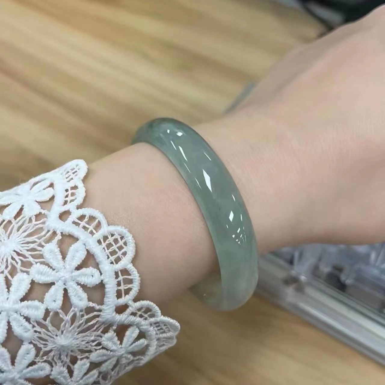 透水潤陽綠冰種晴水飄花油青緬甸老坑翡翠手鐲玉石鐲玉髓鐲子女款