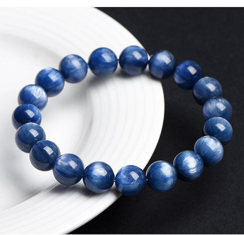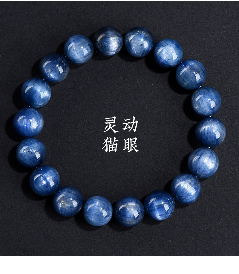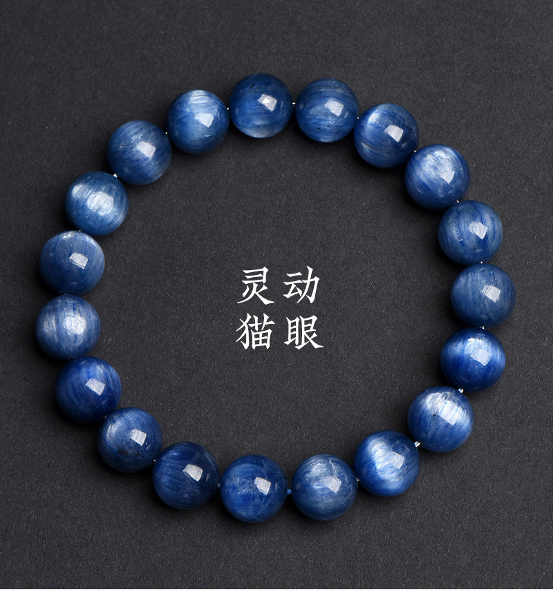 久雅水晶 天然老礦藍晶石圓珠手鏈 貓眼藍晶石散珠手串