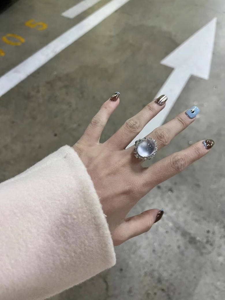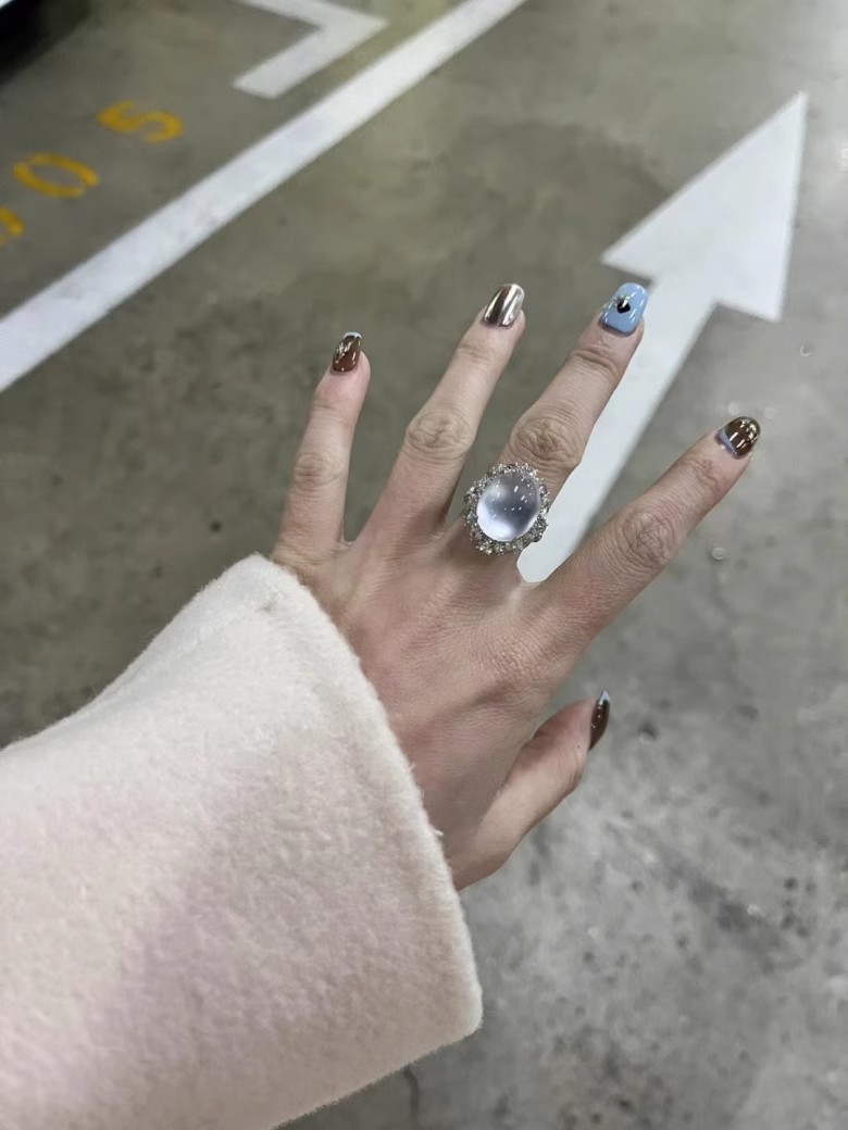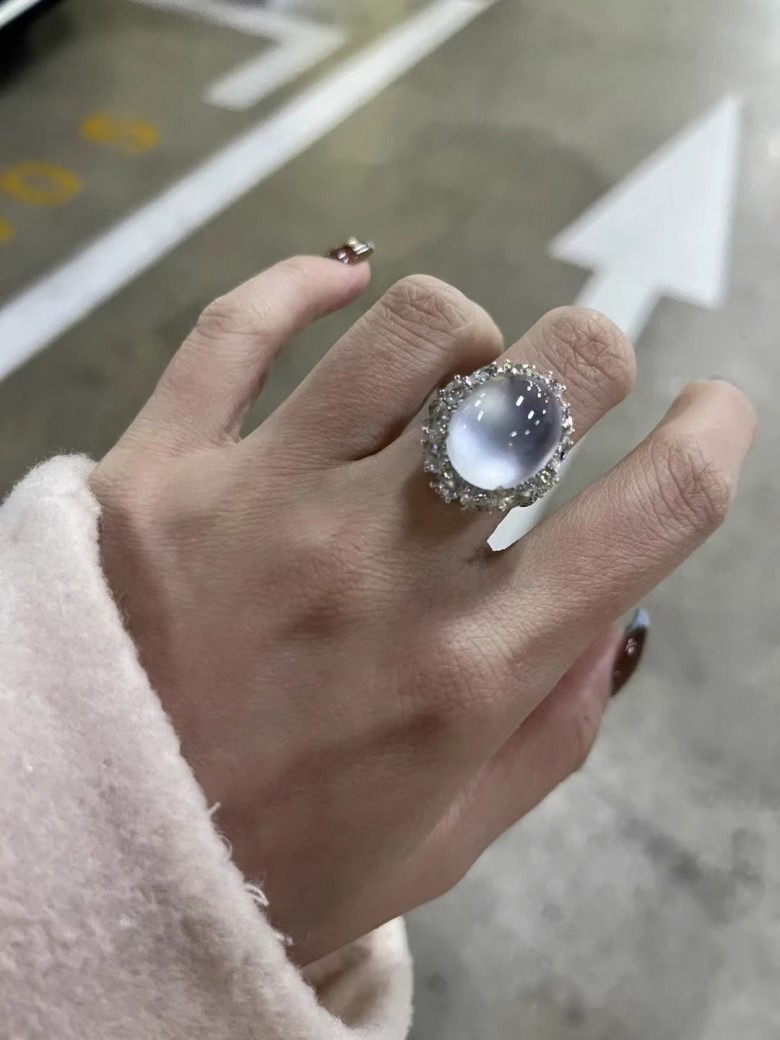 玻璃種明星同款翡翠戒指白冰玉髓冰種蛋面指環界面女款水滴鴿子蛋