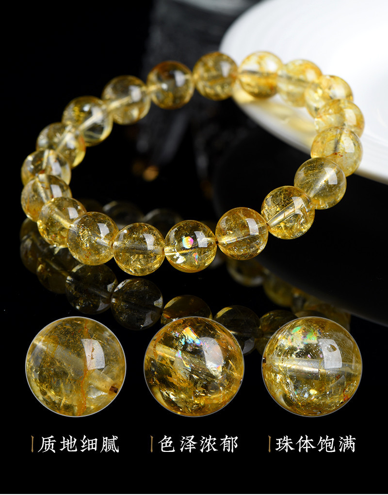 久雅水晶 天然黃托帕石圓珠手鏈 黃色寶石托帕石散珠手串 直